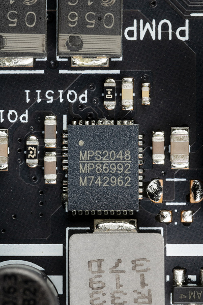 Система питания процессора способна обеспечить работу любых совместимых процессоров с запасом на очень хороший разгон. Плата имеет неплохую систему охлаждения почти каждого потенциально греющегося элемента, включая накопители в слотах M.2 (однако один из них лишен охлаждения, а ведь могли бы поставить радиатор — копейки же стоит). В числе плюсов платы можно упомянуть неплохую подсветку, включая широкие возможности для подключения дополнительных RGB-устройств. К минусам надо отнести не очень высокого качества аудиотракт и всего 1 сетевой контроллер, пусть и 2,5 Гбит/с.