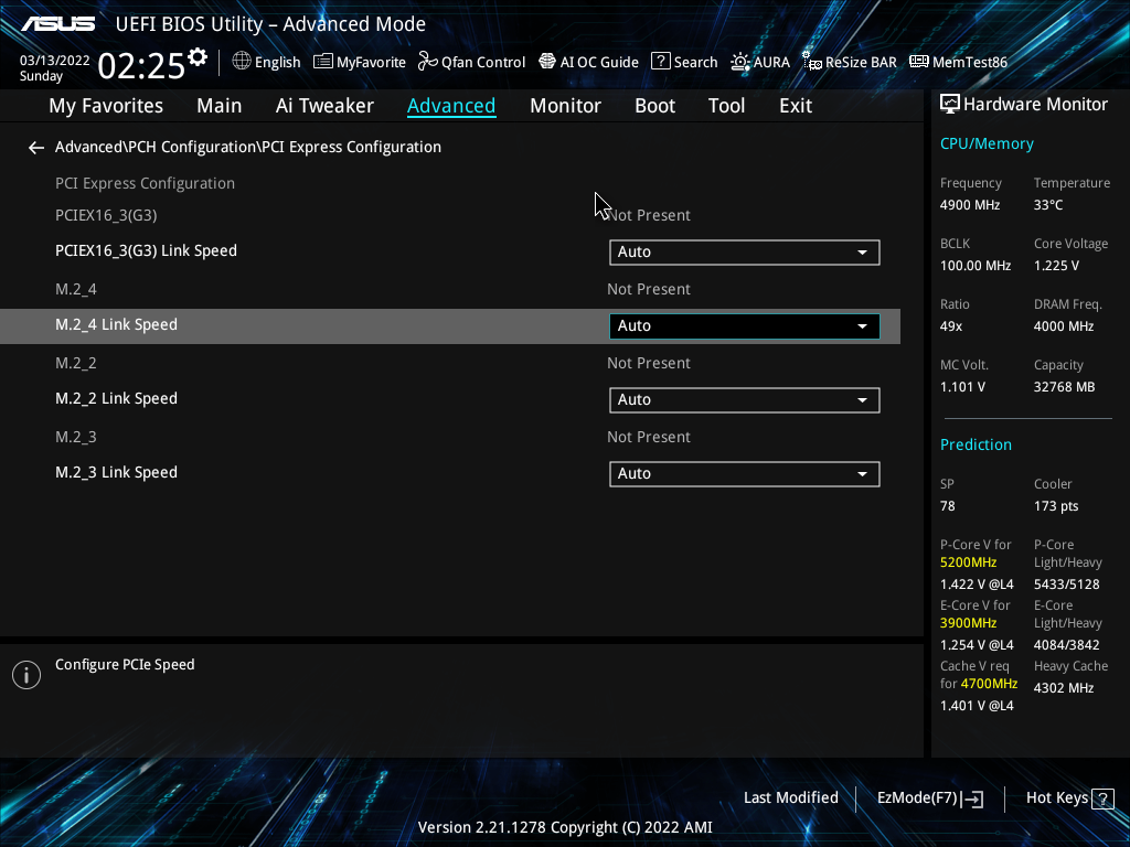 Теперь посмотрим на то, как работают процессоры в данной конфигурации. У CPU 12-го поколения всего 20 линий PCIe, 4 из них версии PCIe 4.0 отведены на порт М.2 (M.2_1).