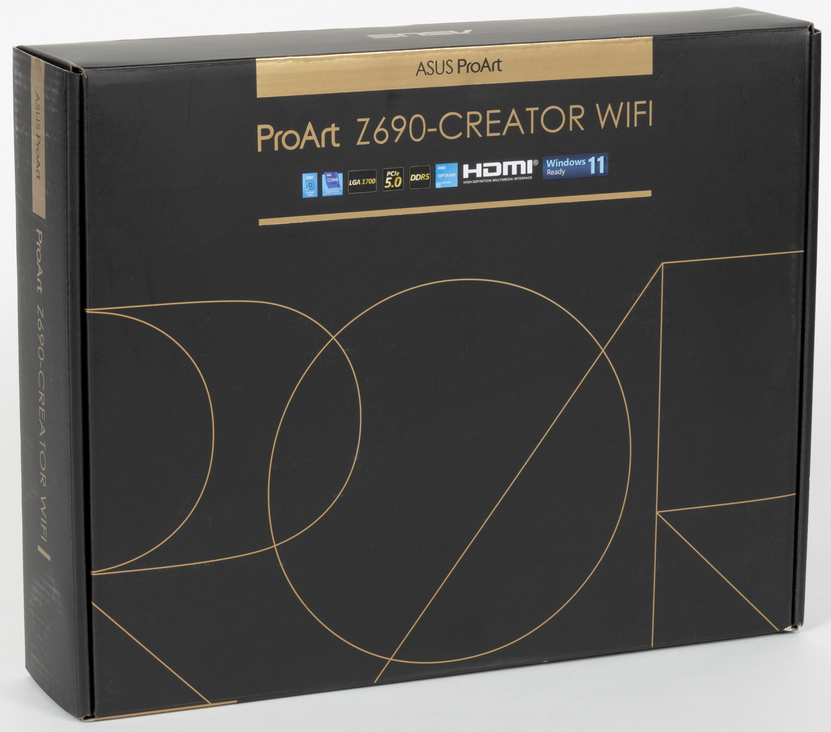 Плата поставляется в стандартной коробке строгого черно-золотого дизайна серии ProArt. Комплект размещен под платой в отдельном отсеке.