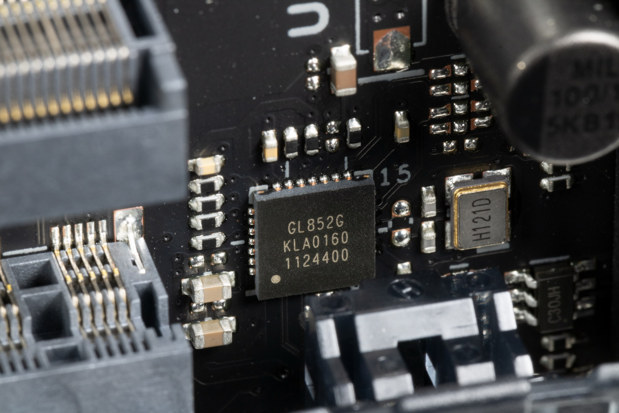 А для поддержания стабильности шины PCIe 3.0 установлены усилители GL9930 от Genesys Logic,