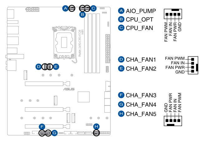 | Прочие внутренние элементы | 24-контактный разъем питания ATX 1 8-контактный разъем питания EPS12V 1 4-контактный разъем питания EPS12V 1 слот M.2 (E-key), занят адаптером беспроводных сетей 1 разъем для подключения порта USB 3.2 Gen2x2 Type-C 1 разъем для подключения 2 портов USB 3.2 Gen1 2 разъема для подключения 4 портов USB 2.0 8 разъемов для подключения 4-контактных вентиляторов и помп ЖСО 1 разъем для подключения неадресуемой RGB-ленты 3 разъема для подключения адресуемой ARGB-ленты 1 разъем аудио для передней панели корпуса 1 разъем COM-порт 1 разъем CPU_OV 1 разъем TPM для устройств безопасности 1 разъем для термодатчика 1 разъем для сброса CMOS 2 разъема для подключения управления с передней панели корпуса |