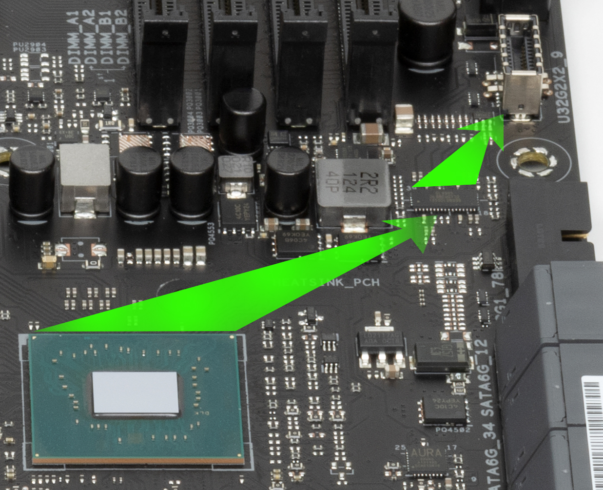 - 1 выделенный USB 3.2 Gen2x2 (не в счет, ибо получен засчет других HSIO);