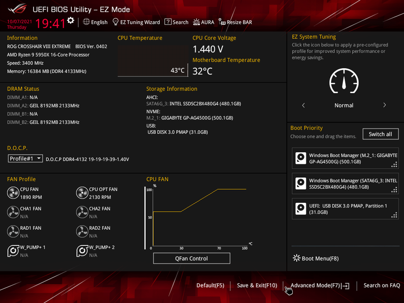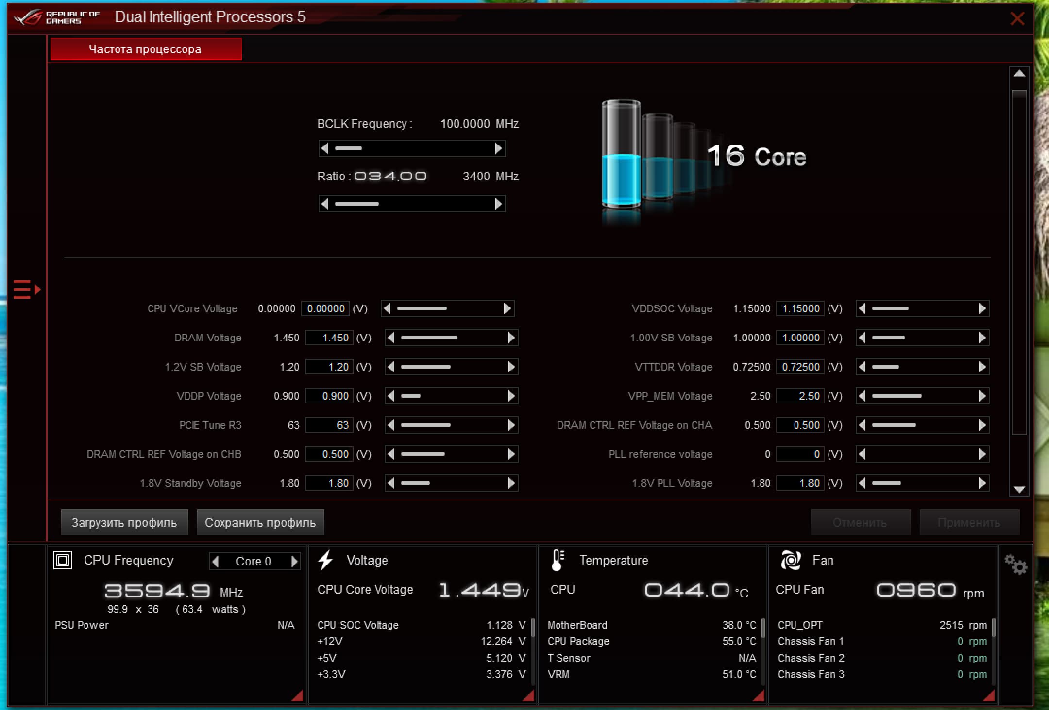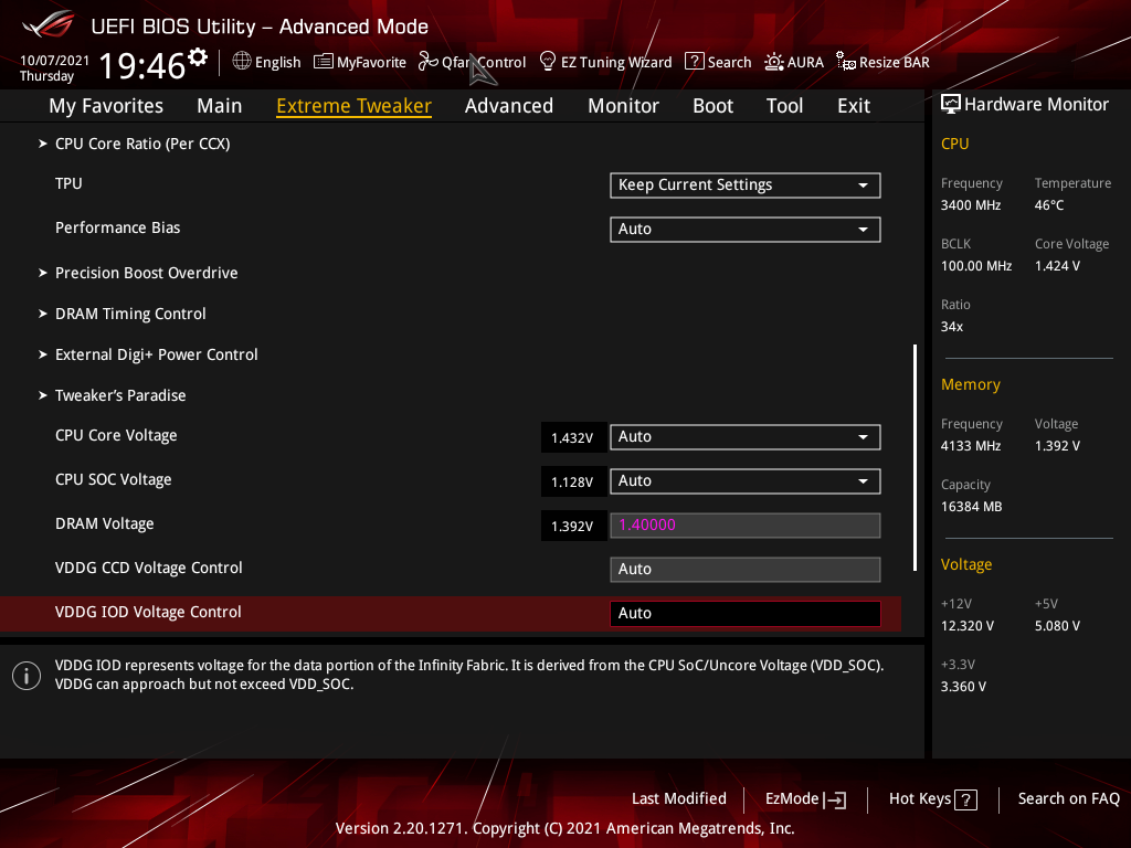 При запуске автоматической оптимизации оверклокинга через BIOS получил 4.6 ГГц по всем ядрам, что можно считать отличным результатом для такого «топчика» как 5950Х.