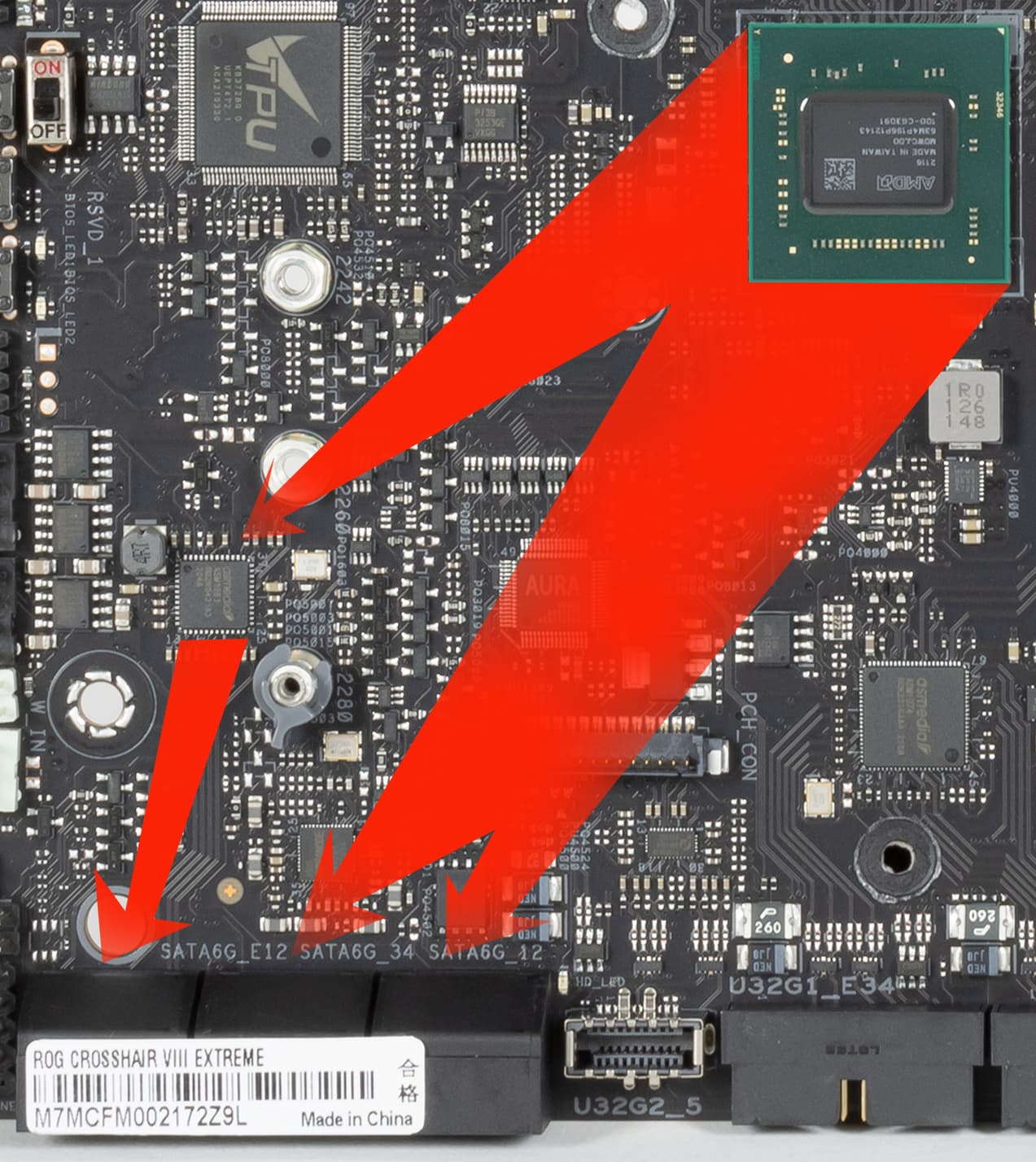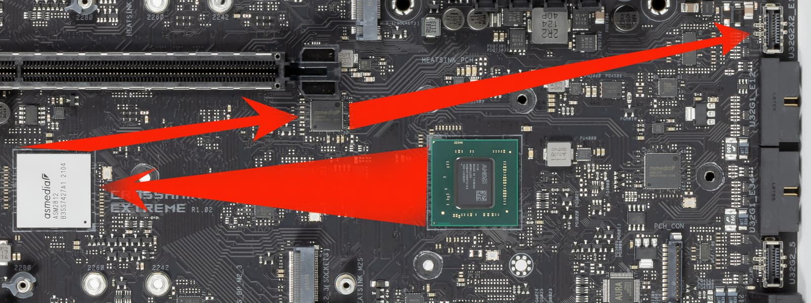 который, потребляя 4 линии от X570, выдает в 2 раза больше (до 8). Поэтому инженеры Asus на ASM2812 возложили поддержку: