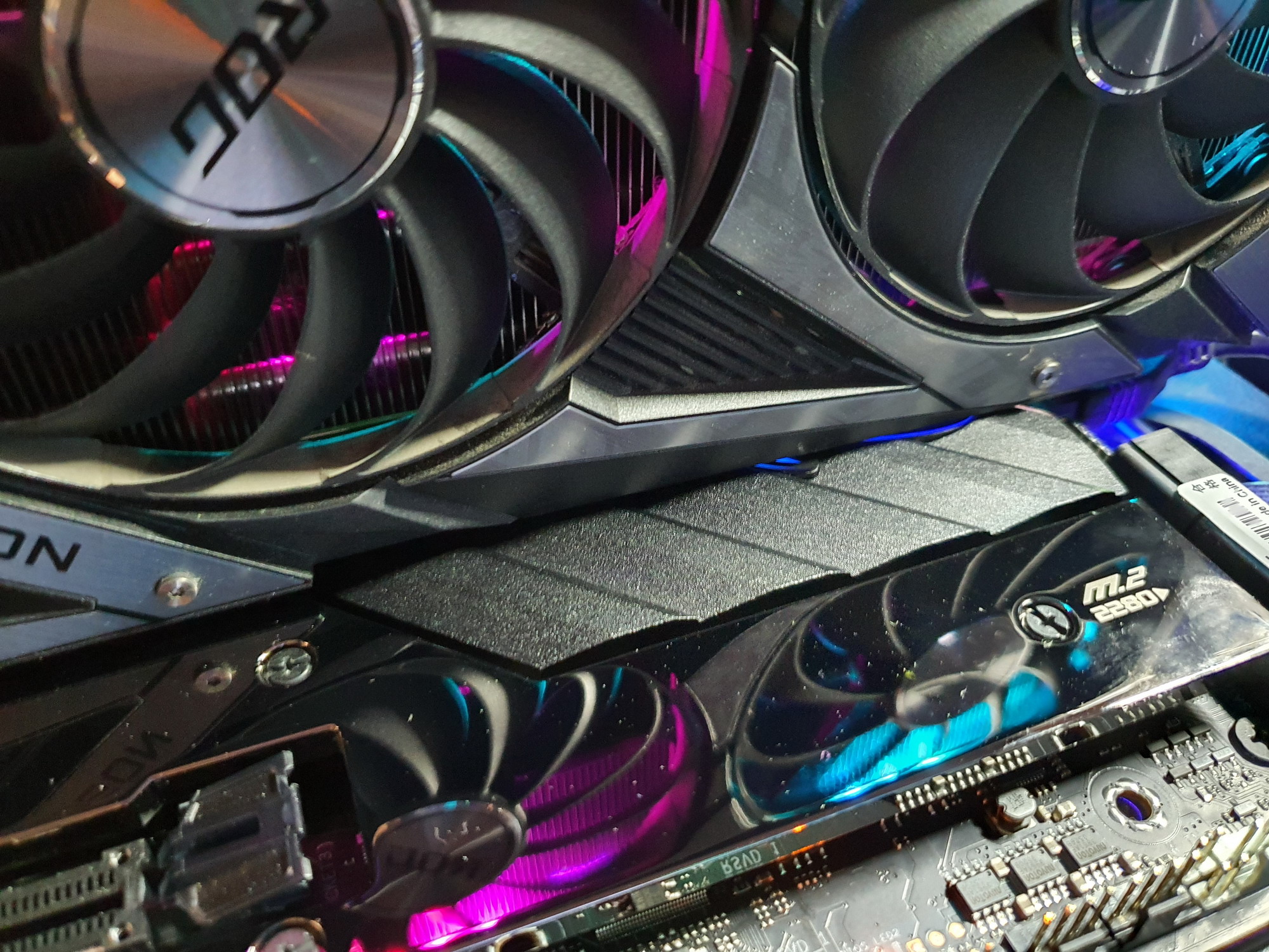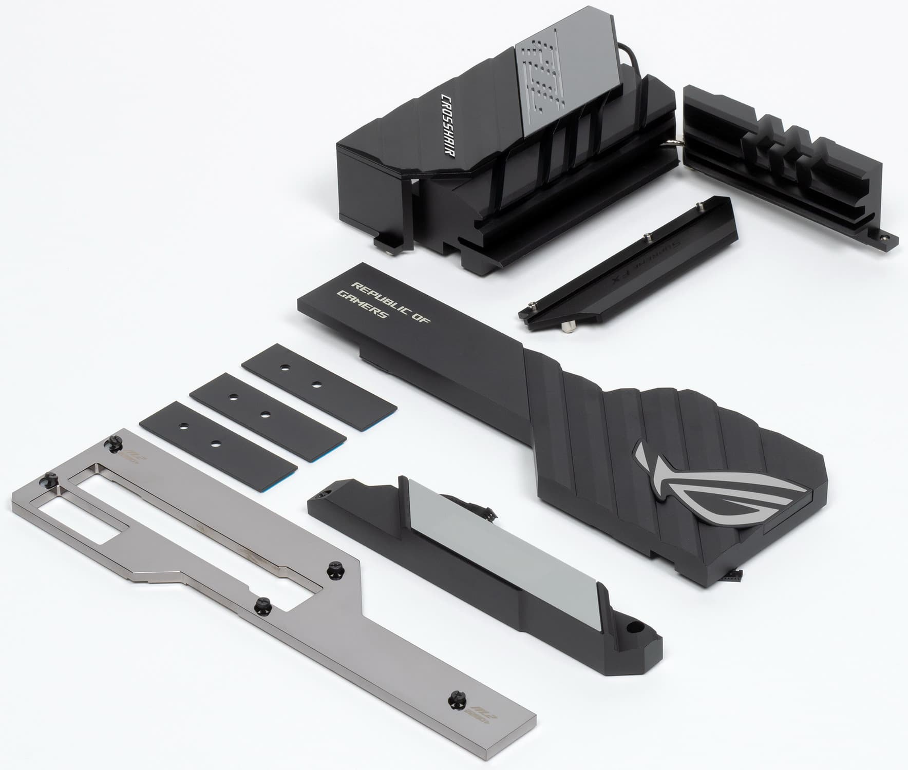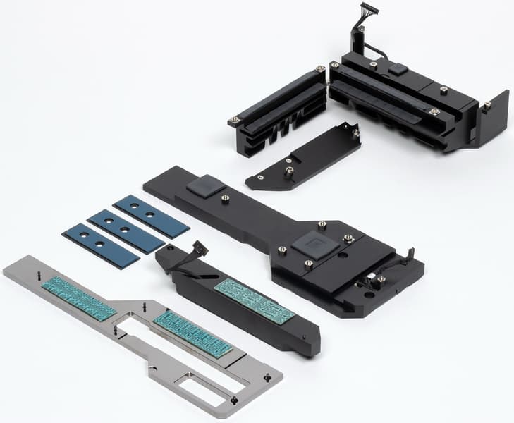 У двух модулей M.2, как я уже выше отмечал, есть свои радиаторы с термоинтерфейсом. Они крепятся отдельно от большого чипсетного радиатора.