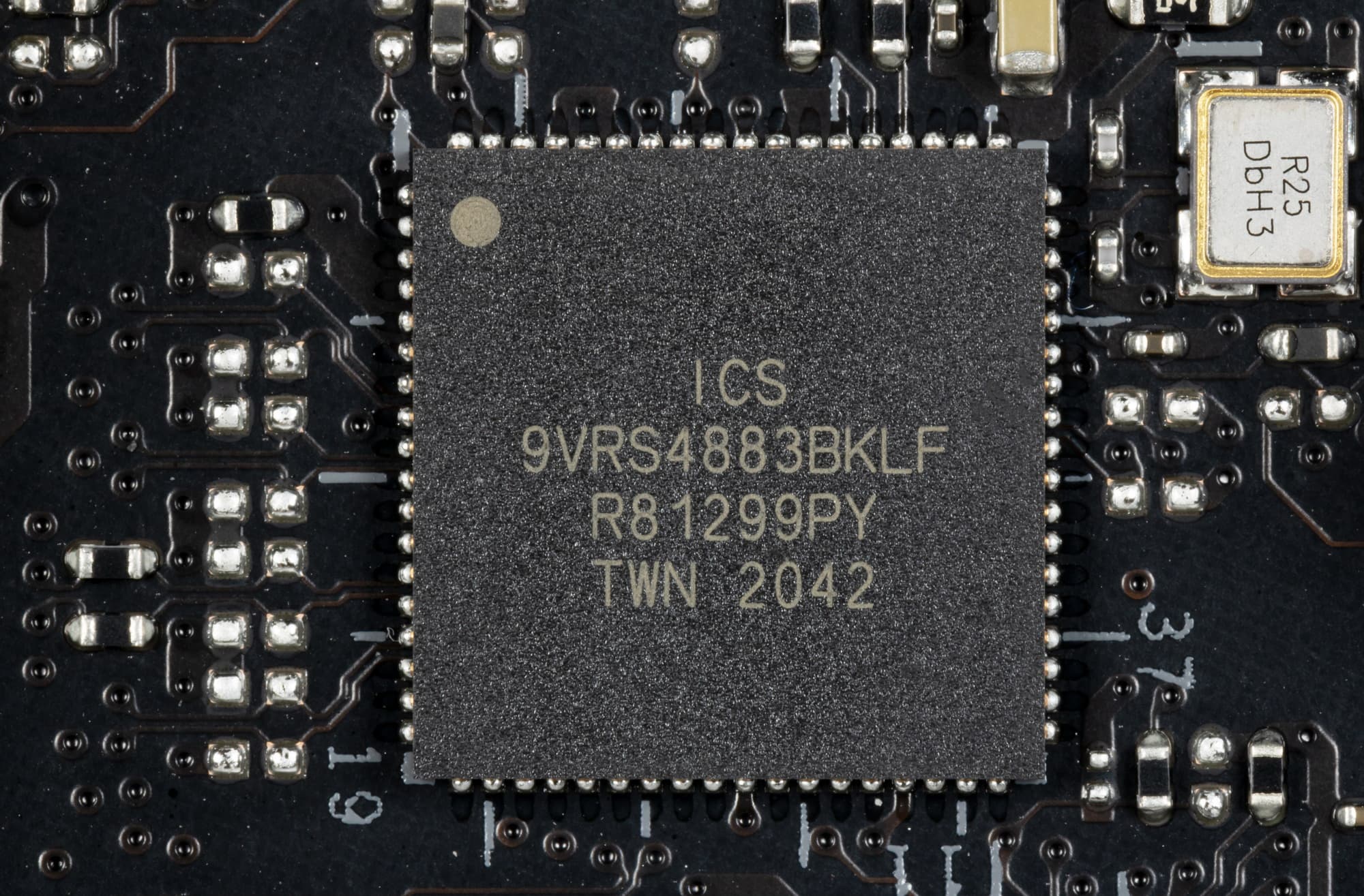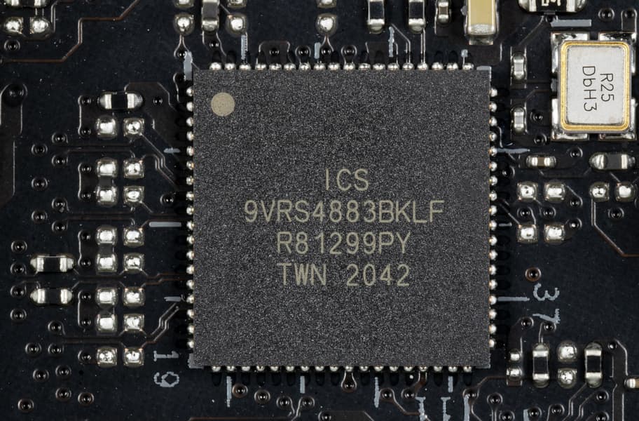 Для поддержания стабильных частот на шине PCIe 4.0 (и для нужд оверклокеров) имеется внешний тактовый генератор от Renesas (ex-ICS), который часто встречается на платах Asus, промаркированный как ProClock II.