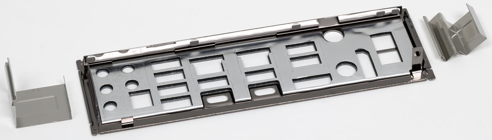 Два длинных («процессорных») слота PCIe x16 имеют металлическое армирование из нержавеющей стали, которое увеличивает их надежность (что может быть важным в случае довольно частой смены видеокарт, но что более важно: такой слот легче выдержит нагрузку на изгиб в случае установки очень тяжелой видеокарты топового уровня. Кроме того, такая защита предохраняет слоты от электромагнитных помех.