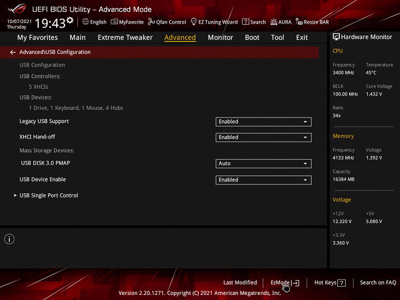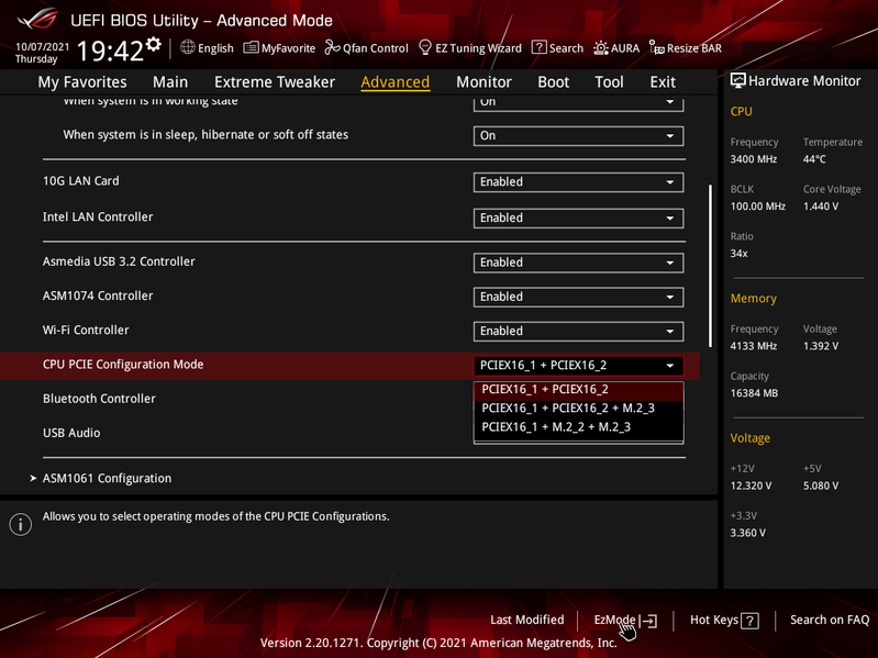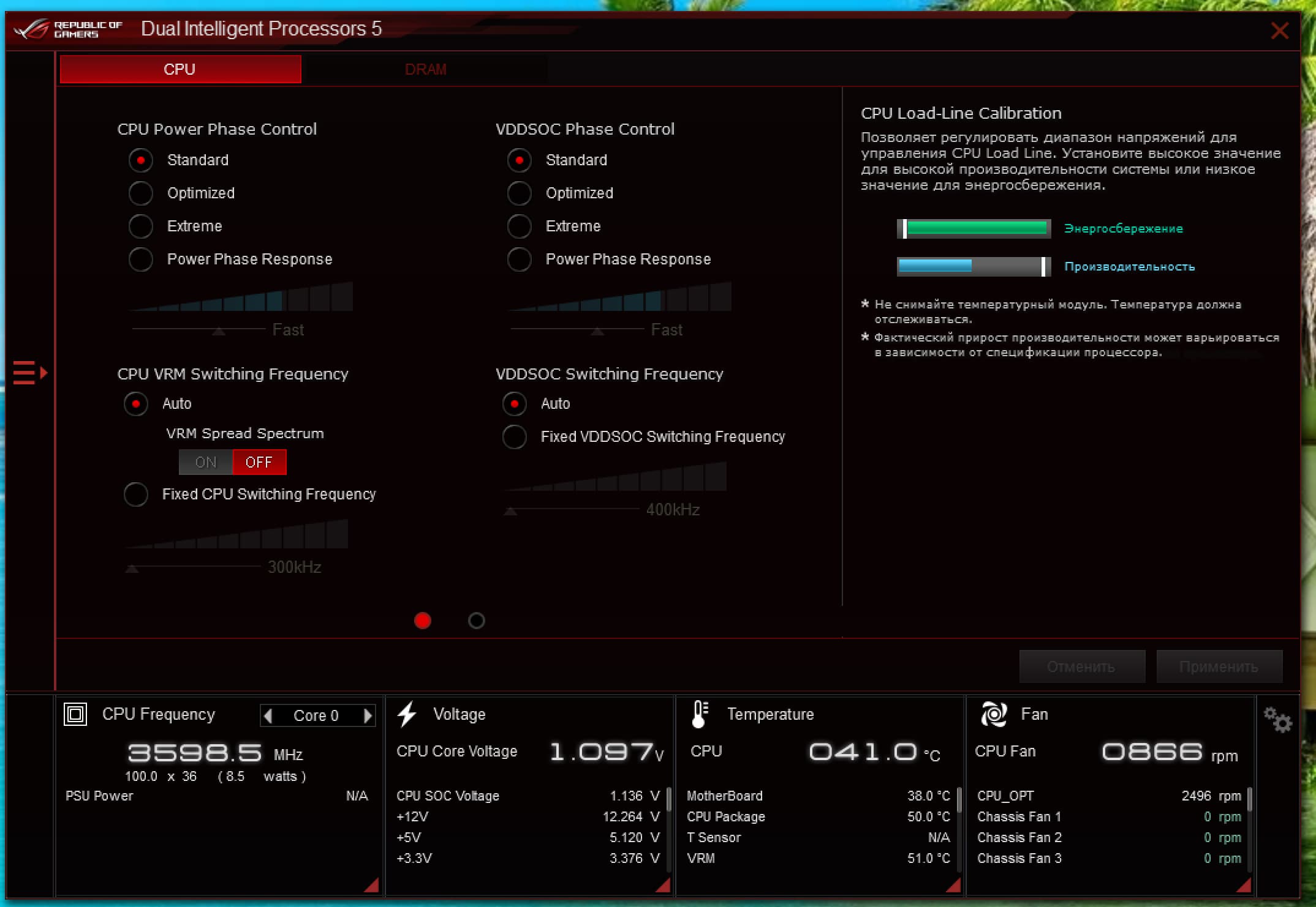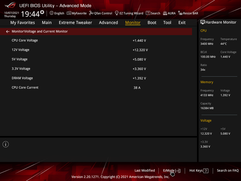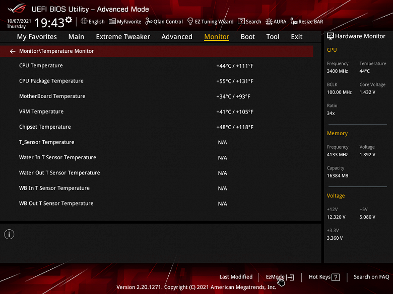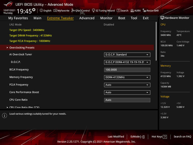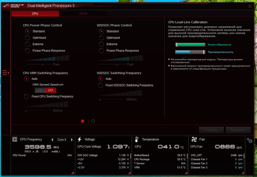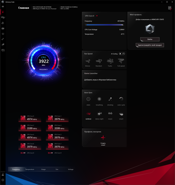 Учитывая уровень этой платы, она должна быть готовой к работе с самым топовым на сегодня процессором Ryzen 9 5950X. Хорошо известно, что современные технологии авторазгона от Intel (Turbo Boost) и AMD (Precision Boost) базируют свои лимиты подъема частот на информации о системе питания на той или иной матплате (сами понимаете, все контроллеры цифровые, в UEFI вся информация имеется). Также следует отметить, что данная плата от Asus способна четко реализовать контроль за частотой IF (Infinity Fabric), держа ее не выше 1800 МГц (разумеется, если она выставлена в режиме Auto) и выставляет множитель для частоты памяти автоматически.