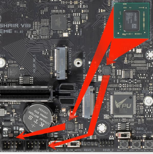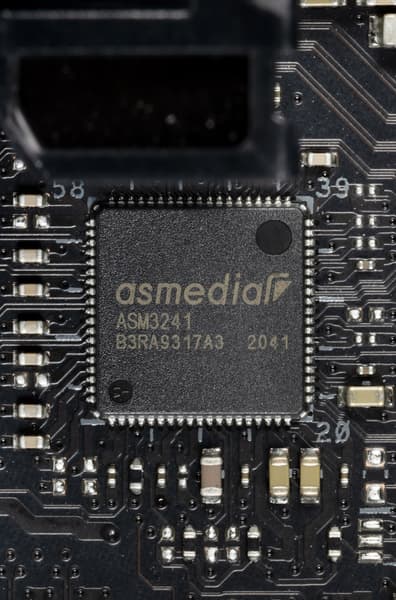 - 1 порт USB 3.2 Gen2x2: реализован через ASMedia ASM3241 (на него потрачены 2 линии от хаба ASM2812) и представлен внутренним портом Type-C для подключения к соответствующему разъему на передней панели корпуса;