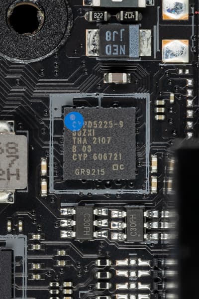 Конечно же нельзя пройти мимо такого мощного инструмента, как Intel Thunderbolt 4. Плата комплектуется соответствующим контроллером на основе Intel JHL8540, который распаян на материнской плате.