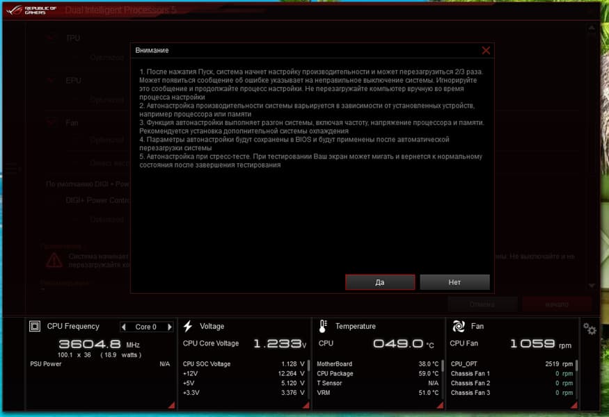 Запускаем все в режиме по умолчанию. Затем нагружаем тестами от AIDA, и OCCT.