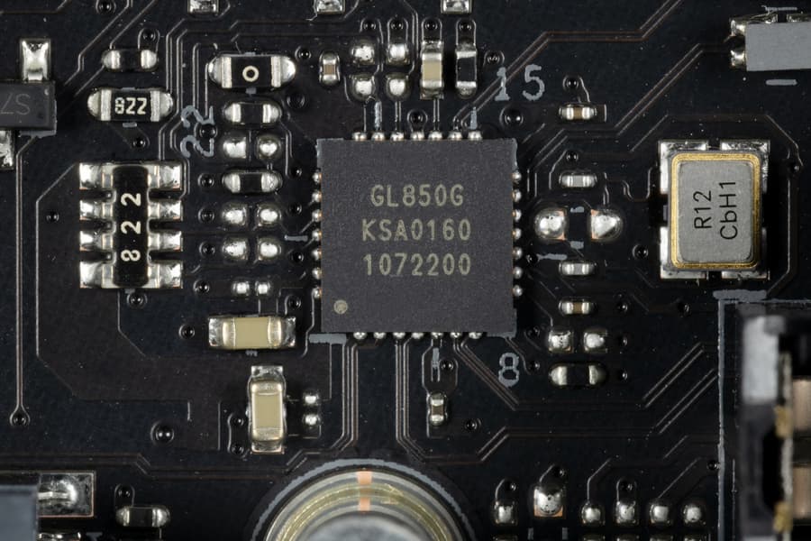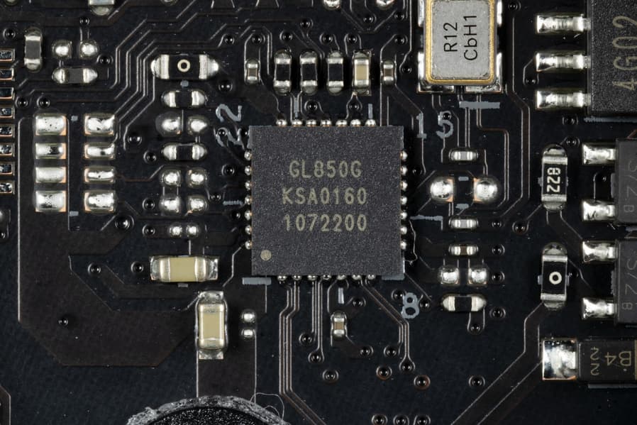 - 4 порта USB 2.0/1.1: все реализованы через два контроллера Genesys Logic GL850G (на каждый из них потрачена 1 линия USB 2.0 от X570) и представлены двумя внутренними разъемами (каждый на 2 порта).