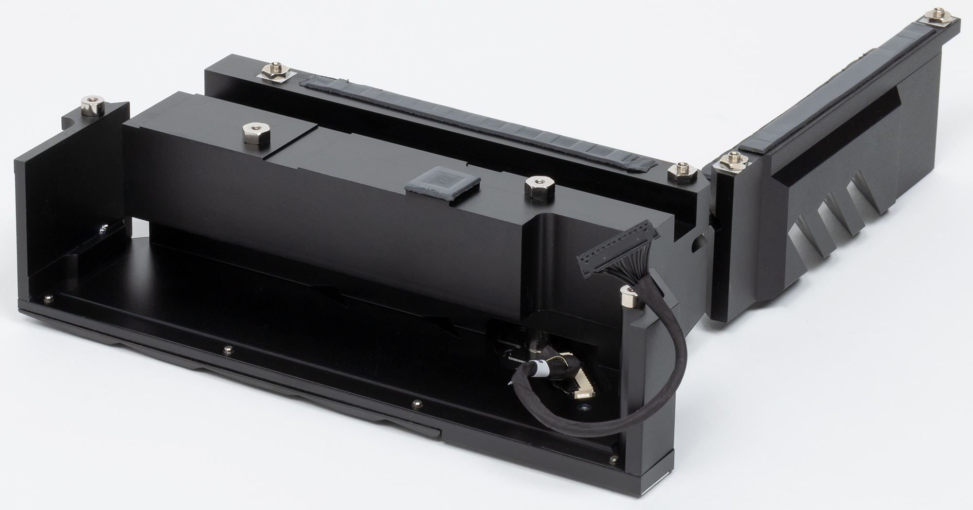 Заглушка, традиционно надеваемая на заднюю панель, в данном случае уже надета, и изнутри экранирована для снижения электромагнитных помех.