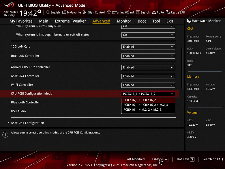 - Слот PCIe x16_1 имеет 8 линий, слот PCIe x16_2 имеет 4 линии, порт М2_3 имеет 4 линии, порт М2_2 отключен;