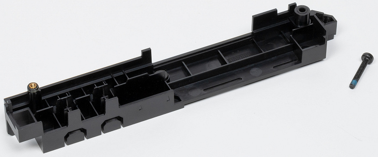 В качестве приятного бонуса идет раздвижная подставка под видеокарту. Правая широкая часть упирается в дно корпуса, а левая узкая устанавливается под правый нижний край видеокарты. Правда следует учитывать, что в раздвинутом положении такая опора сумеет поддержать видеокарту только в случае наличия дна или кожуха в корпусе сразу же после матплаты. То есть опора весьма невысокая.