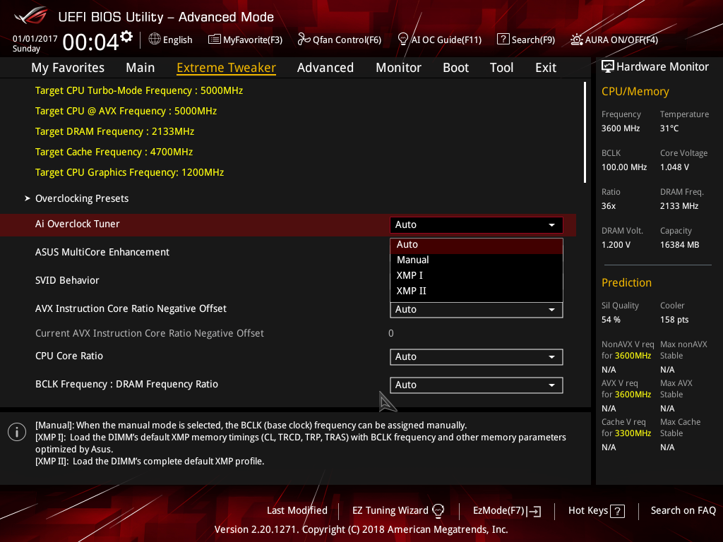 Итак, чтобы открыть все опции для разгона процессора, нужно для параметра Ai Overclocker Tuner выбрать значение Manual или XMP I/II.