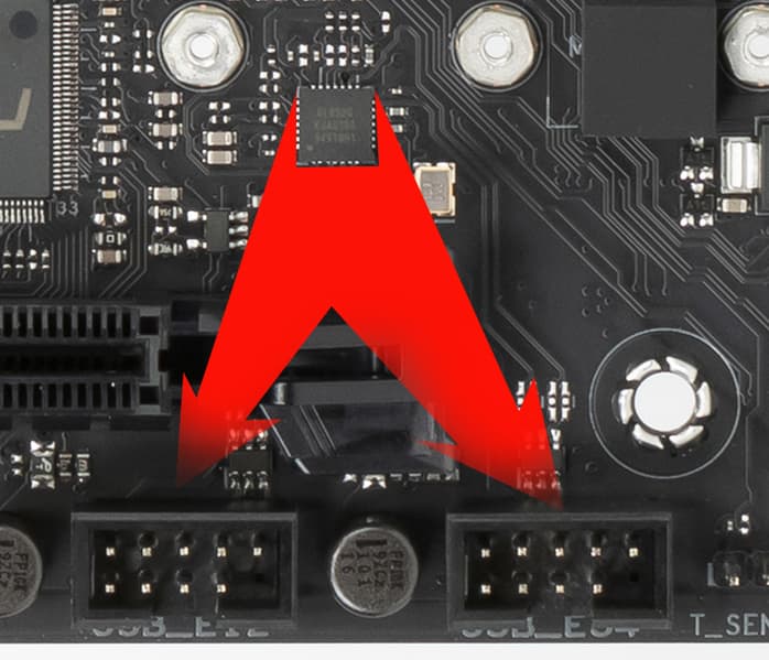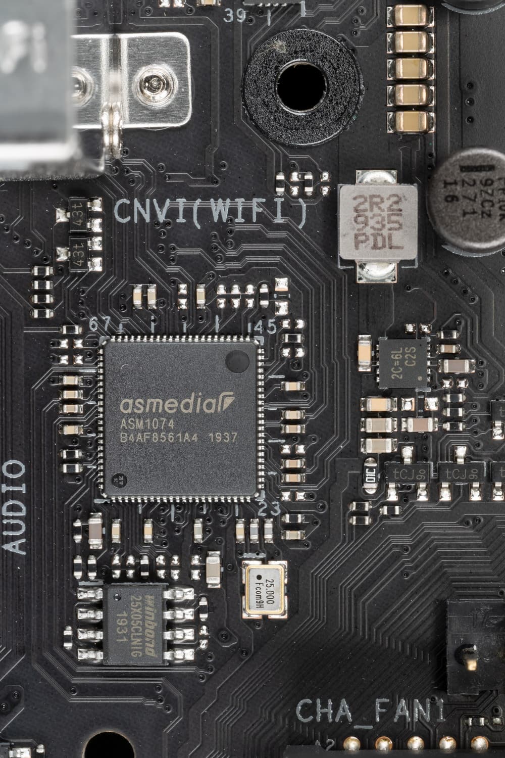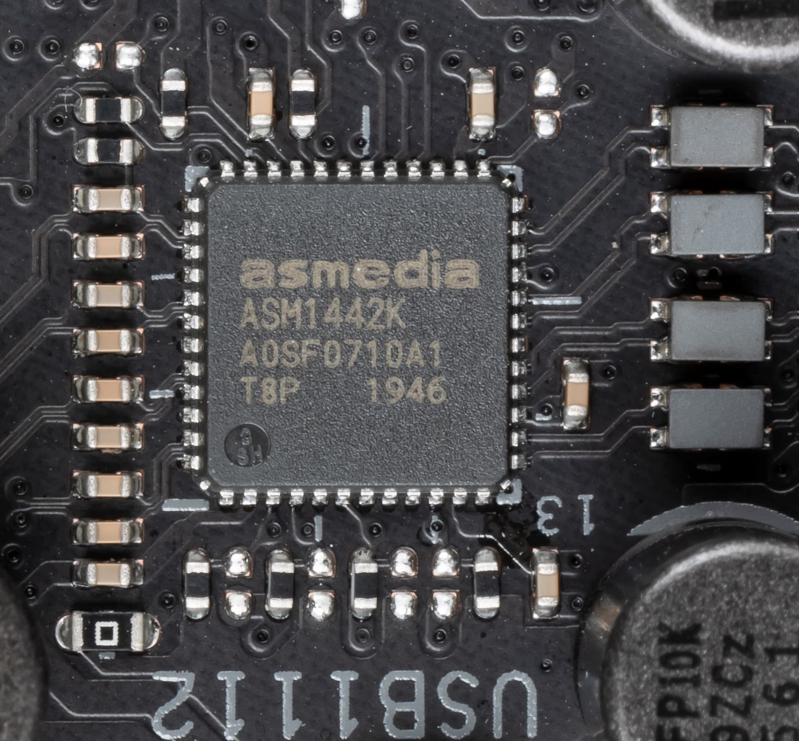 Напомню, что некоторые порты SATA делят ресурсы с портами M.2, поэтому тоже есть мультиплексор ASM1480.