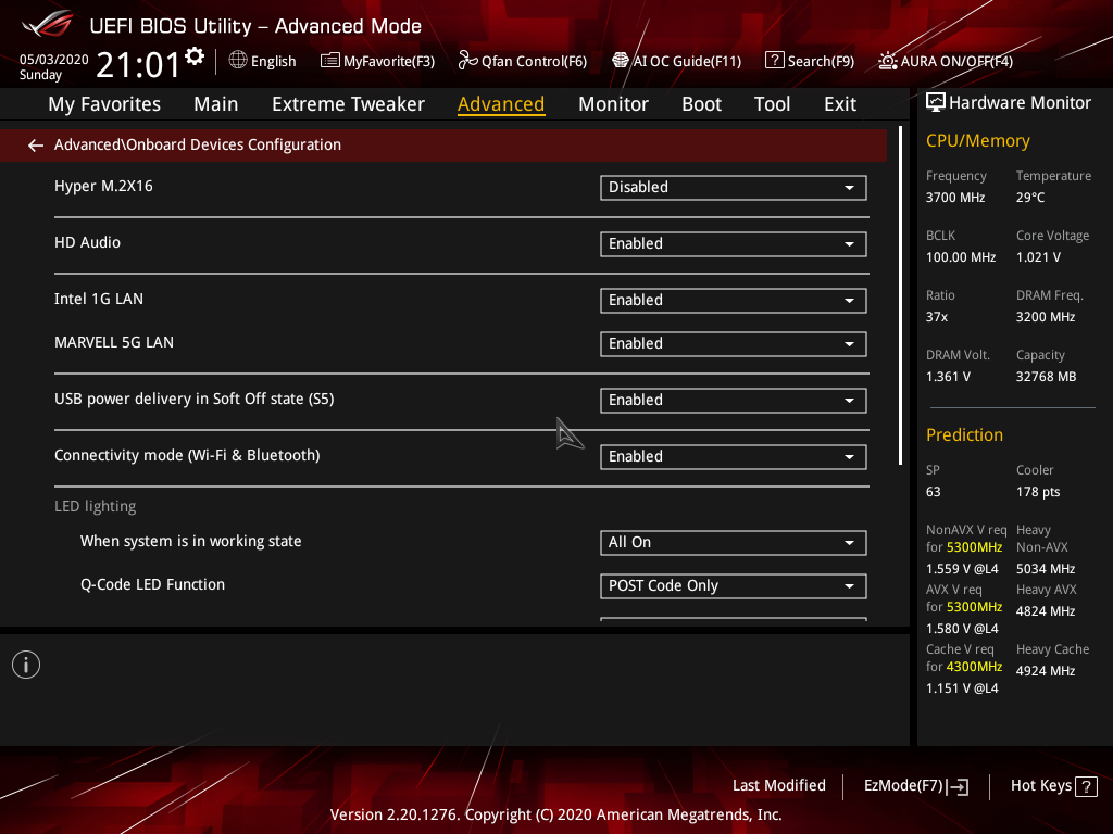 | Сетевые контроллеры | 1 × Intel WGI219-AT Ethernet 1 Гбит/с 1 × Marvel AQtion AQC111 (Ethernet 5 Гбит/с) 1 × Intel Dual Band Wireless AX201NGW/CNVi (Wi-Fi 802.11a/b/g/n/ac/ax (2,4/5 ГГц) + Bluetooth 5.0) |