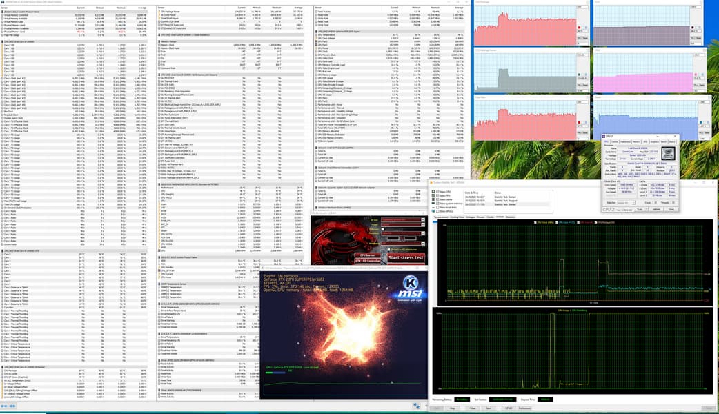 Запускаем все в режиме по умолчанию (MCE включен в авто-режиме). Затем нагружаем тестом от AIDA, дополняя картину с помощью MSI Kombustor.