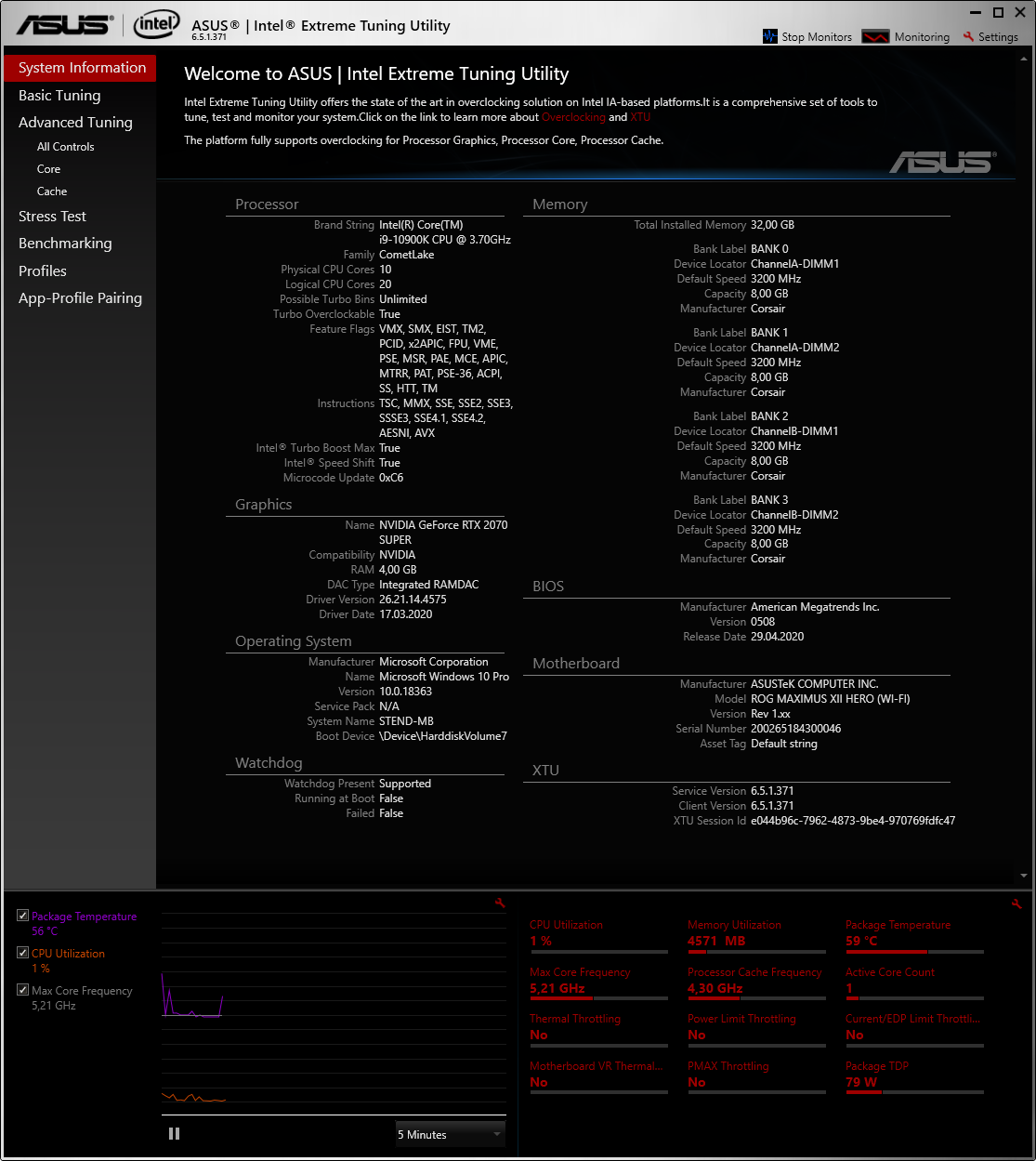 С ПО от Asus поставляется фирменная утилита Intel Extreme Tuning Utility (XTU) (брендированная под Asus).
