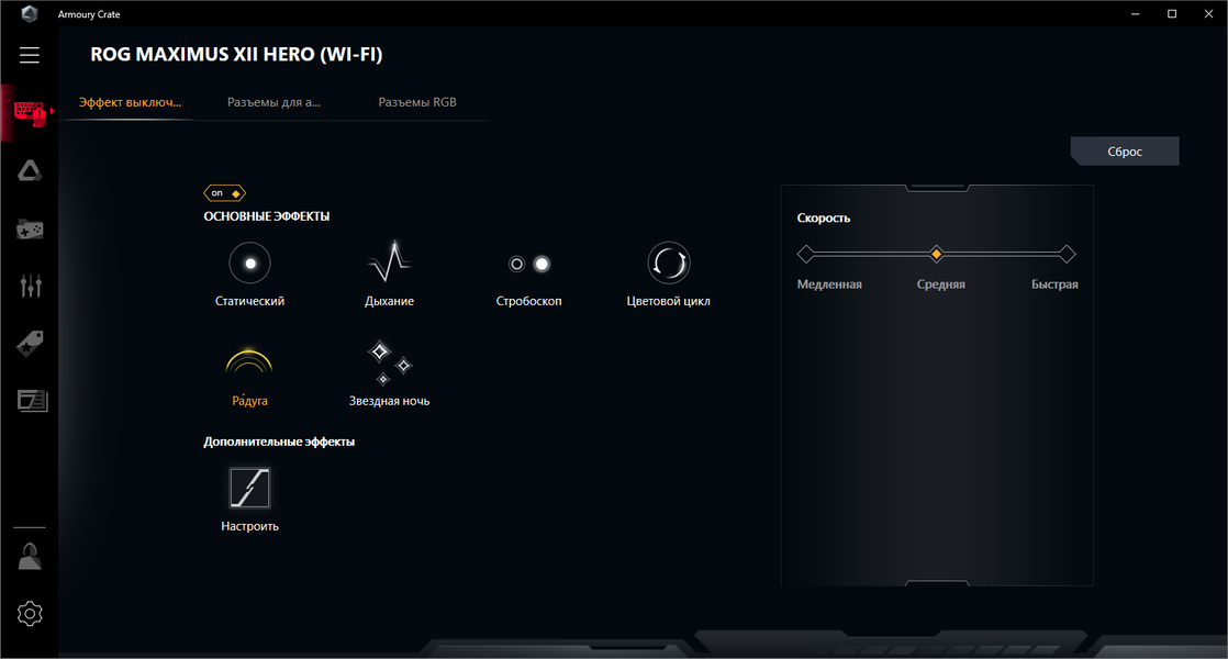 Можно настроить эффекты подсветки при выключенной материнской плате (когда ПК выключен, но БП все равно подает питание на материнскую плату).