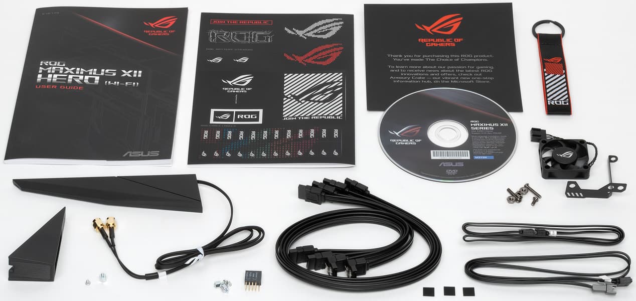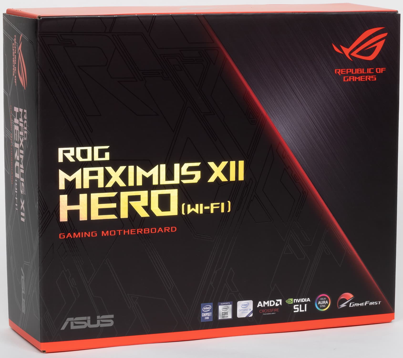 ROG Maximus XII Hero (Wi-Fi) поставляется в большой и толстой коробке с фирменным дизайном ROG.