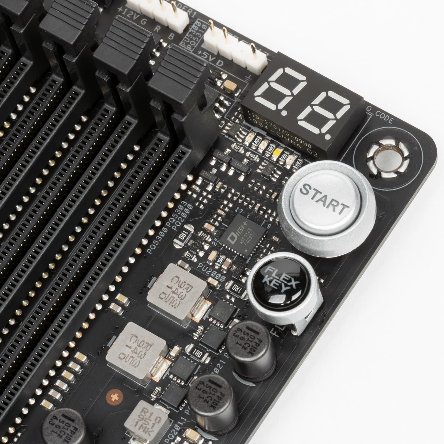 Их не так много на этой плате. Разумеется, есть кнопки питания и перезагрузки, при этом последняя названа Flex Key, и функция Reset просто задана по умолчанию. Через настройки в BIOS можно поменять функционал этой кнопки.