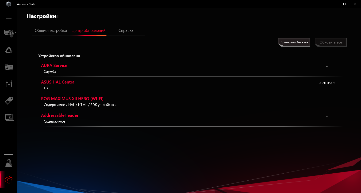 Следует еще сказать про утилиту Armoury Crate, которая является этаким менеджером-надзирателем за всем ПО Asus, следя за своевременным обновлением, управляет подсветкой (Aura Sync ныне интегрирована в Armoury Crate) ну и новыми возможностями, а также отвечает за синхронизацию работы всех устройств Asus из серии ROG.
