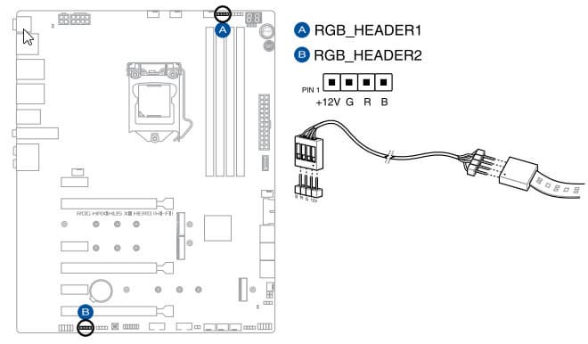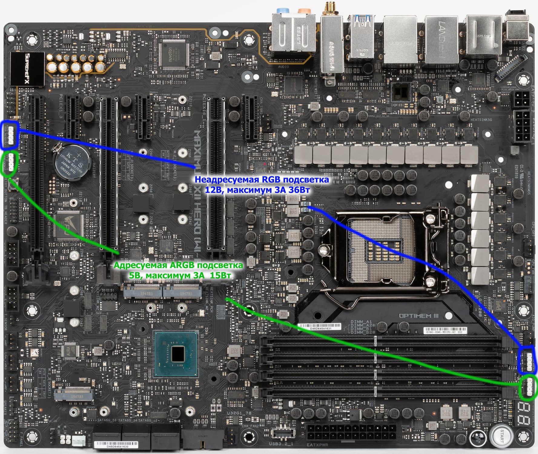 Схемы подключения стандартны для всех материнских плат, поддерживающих подсветку: