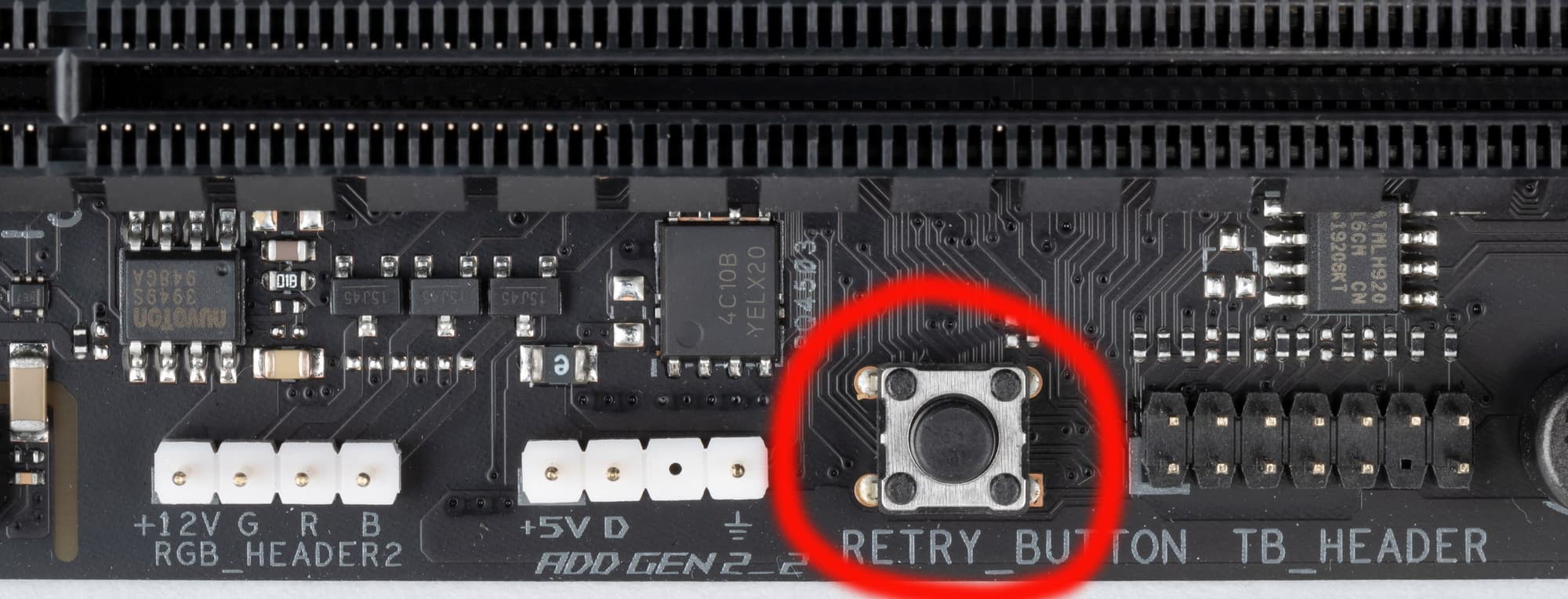 Когда мы имеем дело с ROG, то ожидаем некий набор технологий, помогающих оверклокерам, в частности набор перемычек, кнопок или переключателей. Однако на данной плате из всего арсенала реализована лишь кнопка повторной попытки запуска системы при тех же настройках в случае неудачного старта (бывает при чрезмерном оверклокинге).