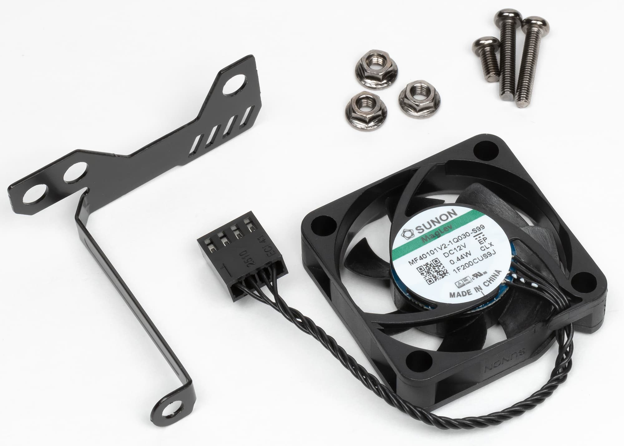 Если любителям разгона чрезмерный нагрев VRM (при условии пассивного охлаждения) станет помехой, то в комплекте поставки материнской платы есть маленький вентилятор с крепежом для монтажа над основным радиатором VRM.