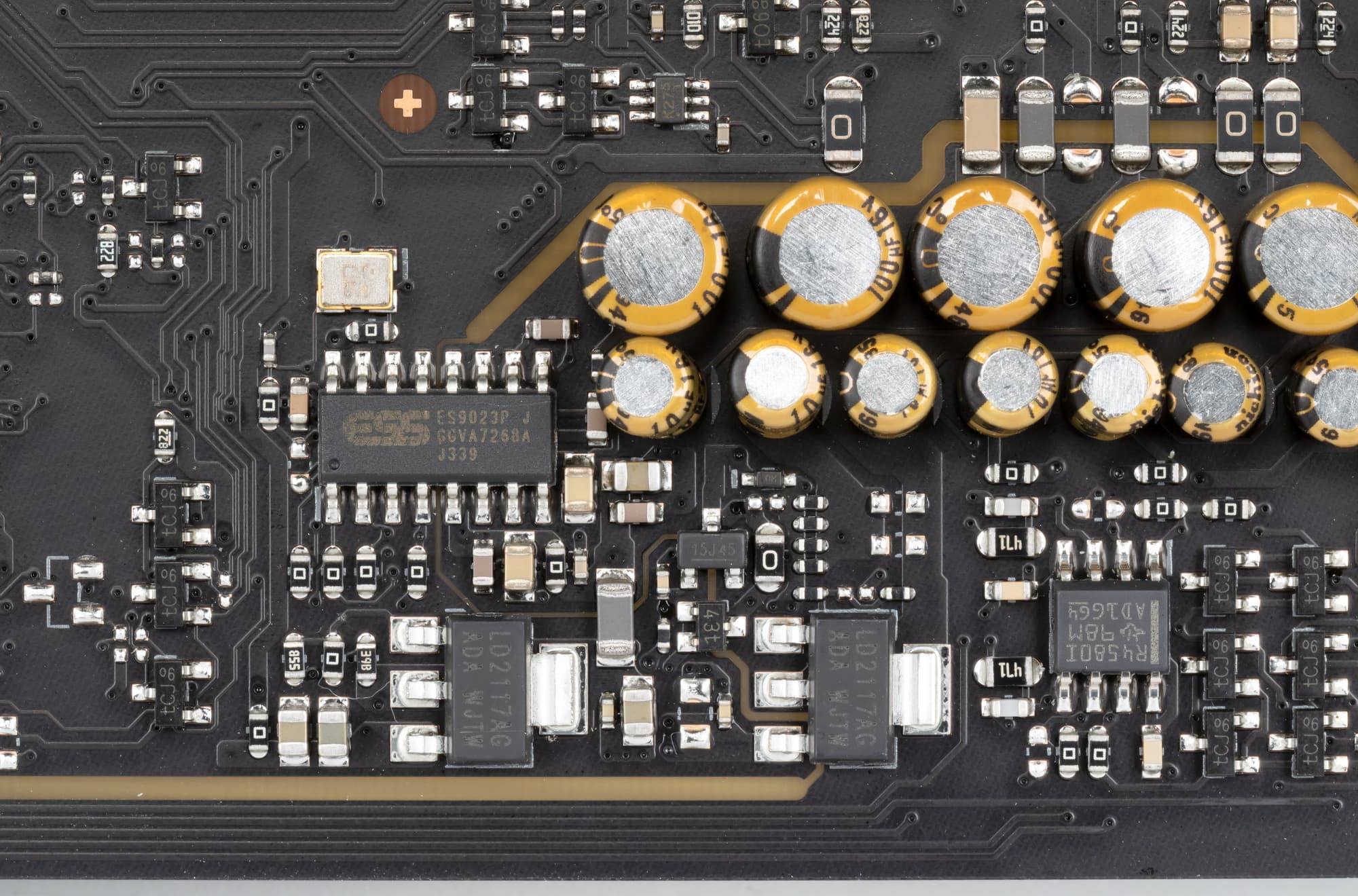 Имеется также осциллятор, обеспечивающий точную работу ЦАП. А также аудиотракт содержит двойной операционный усилитель R4580I от Texas Instruments. В аудиоцепях платы применяются «аудиофильские» конденсаторы Nichicon Fine Gold .