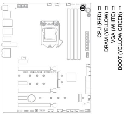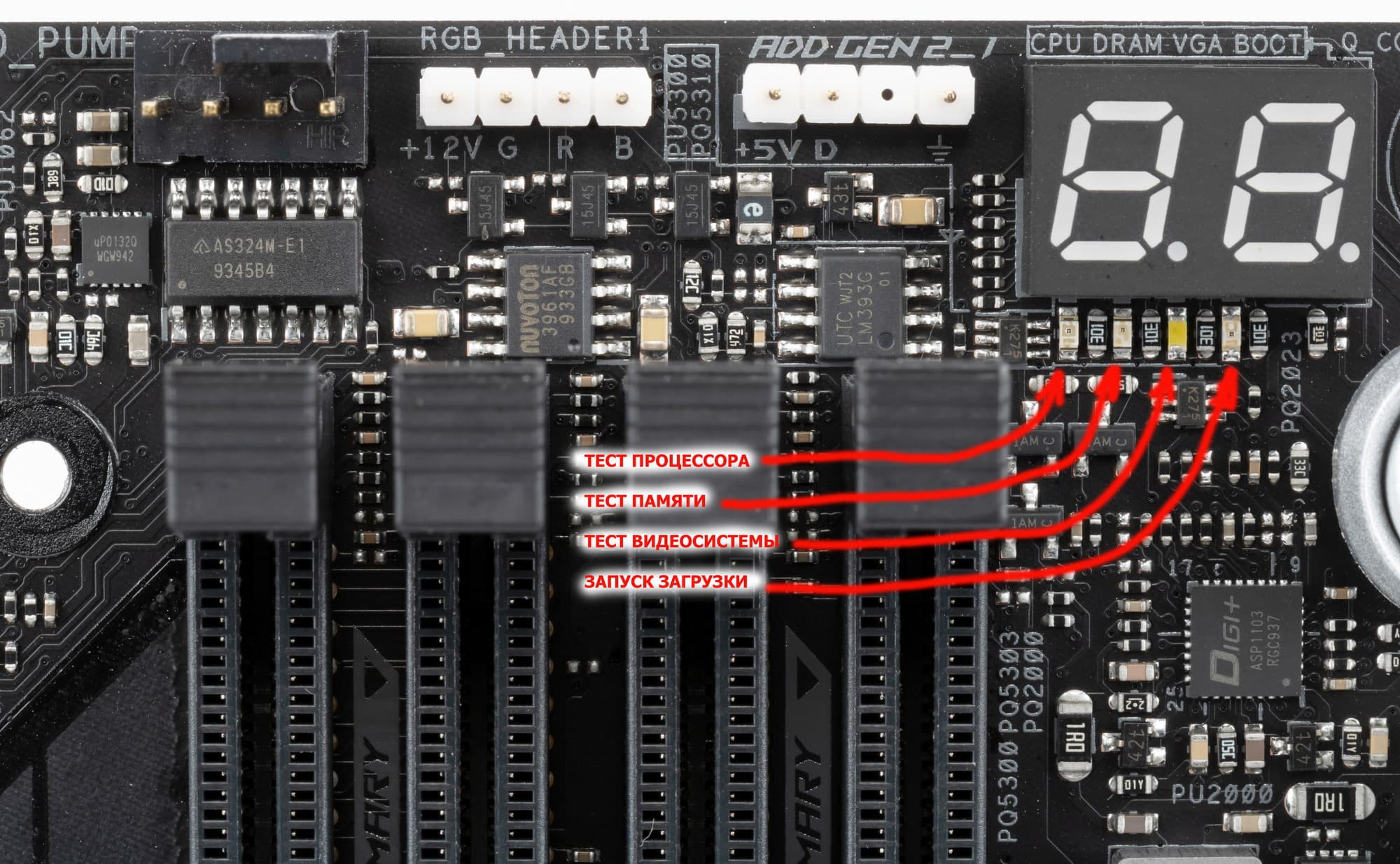 У платы еще есть световые индикаторы, сообщающие о проблемах с тем или иным компонентом системы.