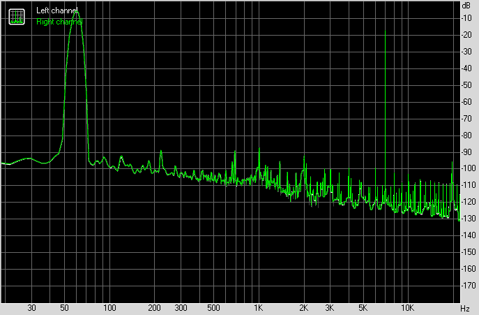 Для тестирования выходного звукового тракта, предназначенного для подключения наушников или внешней акустики, мы использовали внешнюю звуковую карту Creative E-MU 0202 USB в сочетании с утилитой RightMark Audio Analyzer 6.4.5. Тестирование проводилось для режима стерео, 24-бит/44,1 кГц. Во время тестирования ИБП тестового ПК физически отключался от электросети и работал на аккумуляторе.