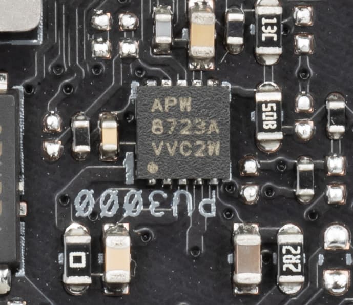 VRM-секция имеет свой мощный трехсекционный радиатор, а еще один небольшой радиатор имеется около задней панели — призван охлаждать Marvel Aqtion AOC111 (скоростной сетевой контроллер). Три секции радиатора VRM связаны тепловой трубкой под прямым углом друг ко другу и охлаждают силовые преобразователи всех трех схем питания CPU.