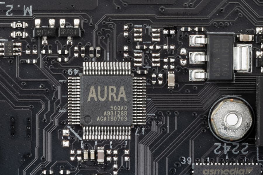 Контроль по синхронизации работы подсветки RGB возложен на чип Aura 50QА0 (неизвестно, как оригинально назывался чип и кто его производитель).