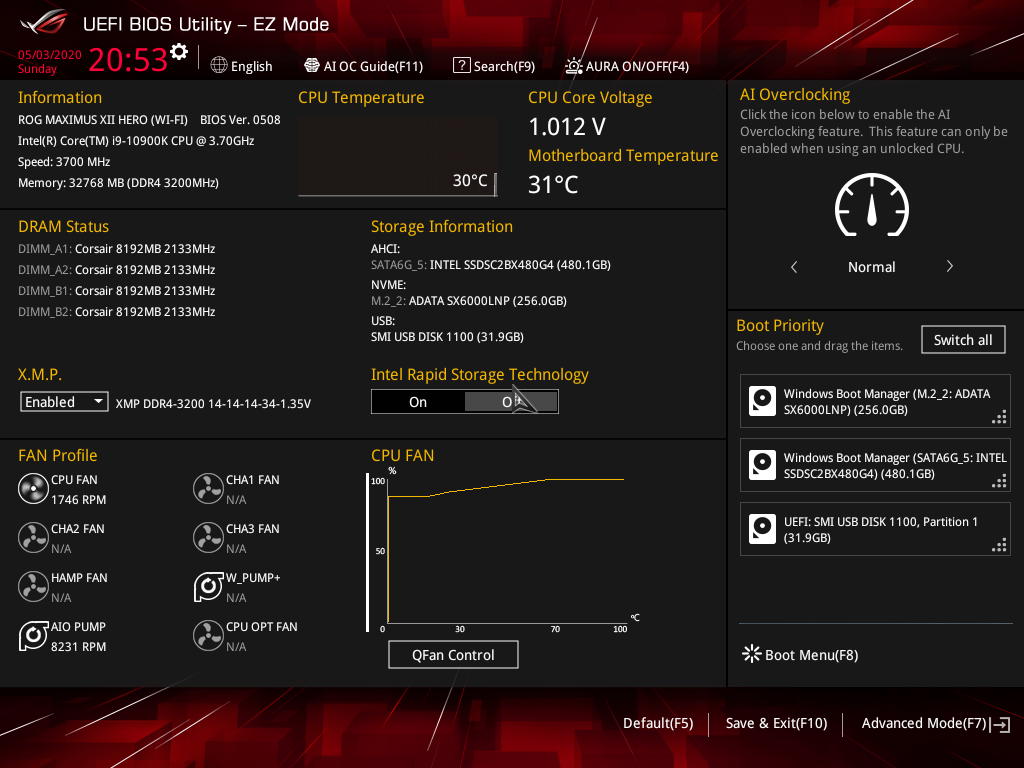 - материнская плата ROG Maximus XII Hero (Wi-Fi);