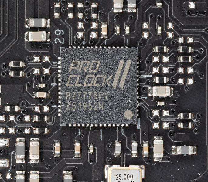 Для поддержания стабильных частот на шине PCIe (и для нужд оверклокеров) имеется внешний тактовый генератор.