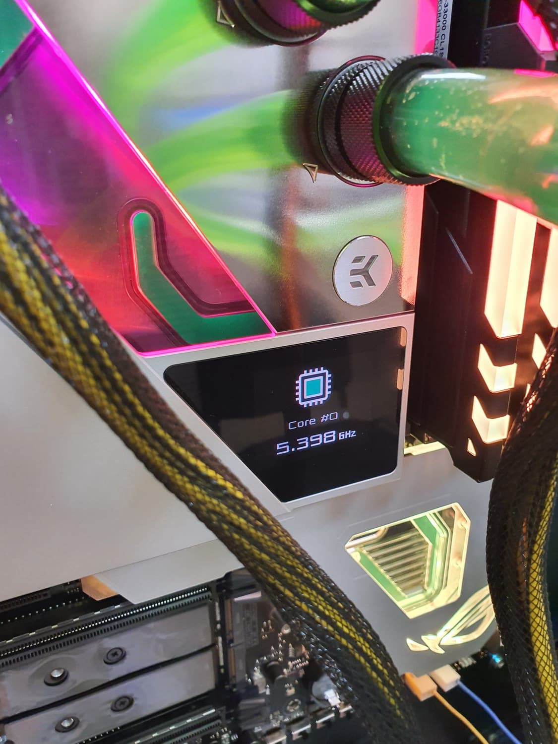 Водоблок также охлаждает и Z590, в этом месте имеется эффектная прозрачная вставка с подсветкой.