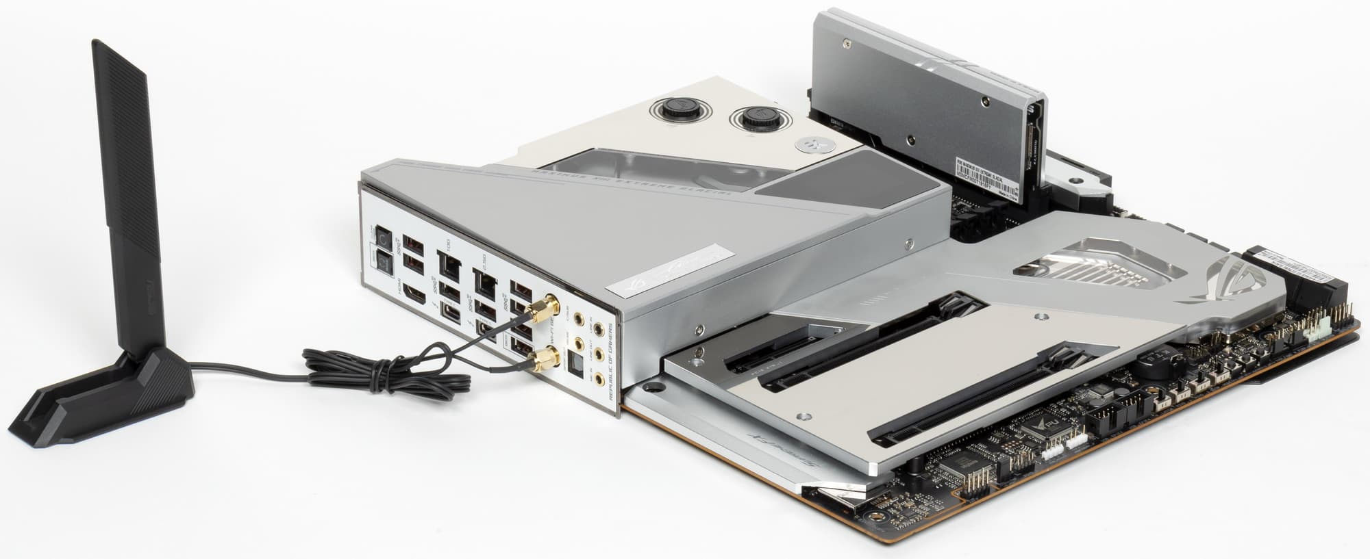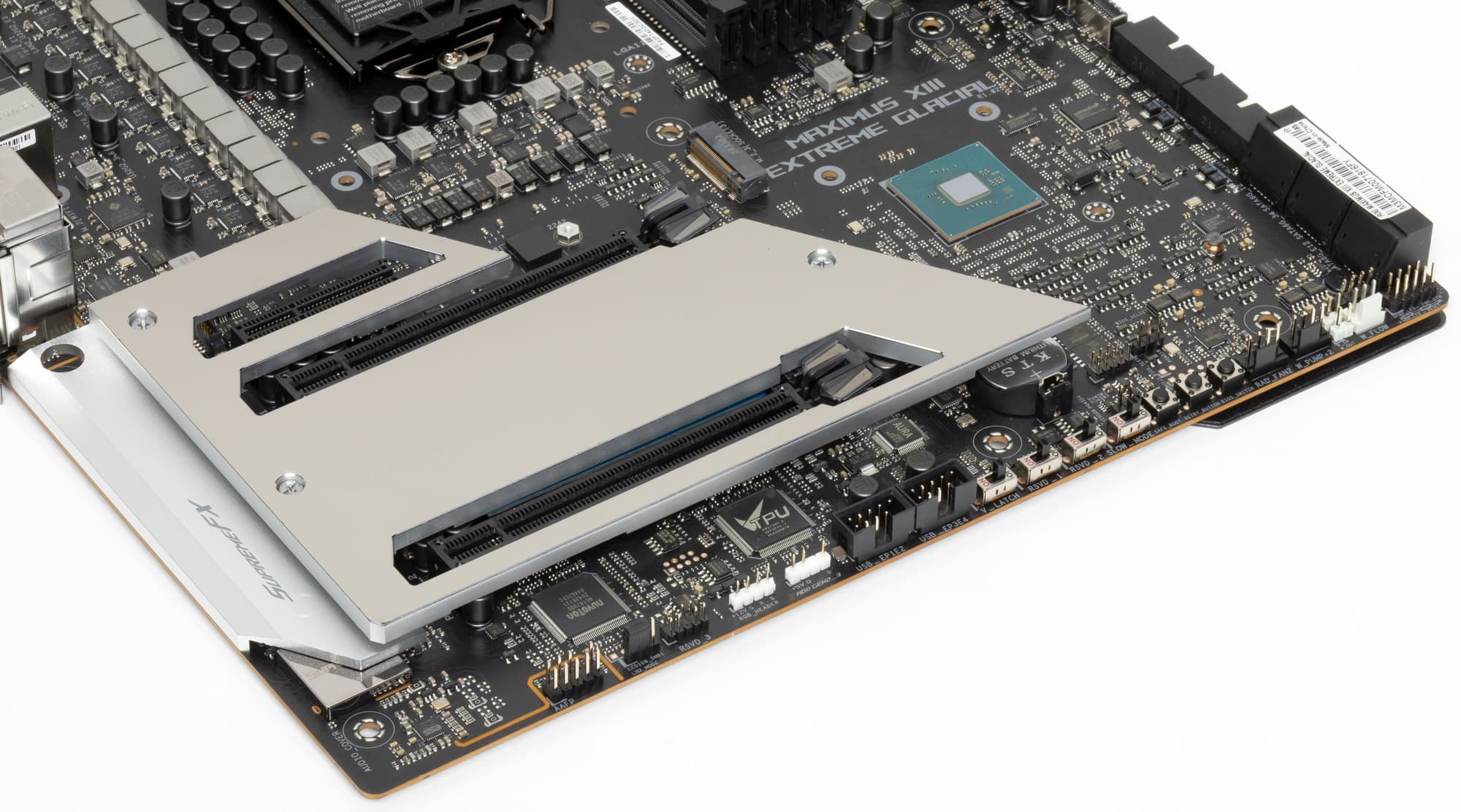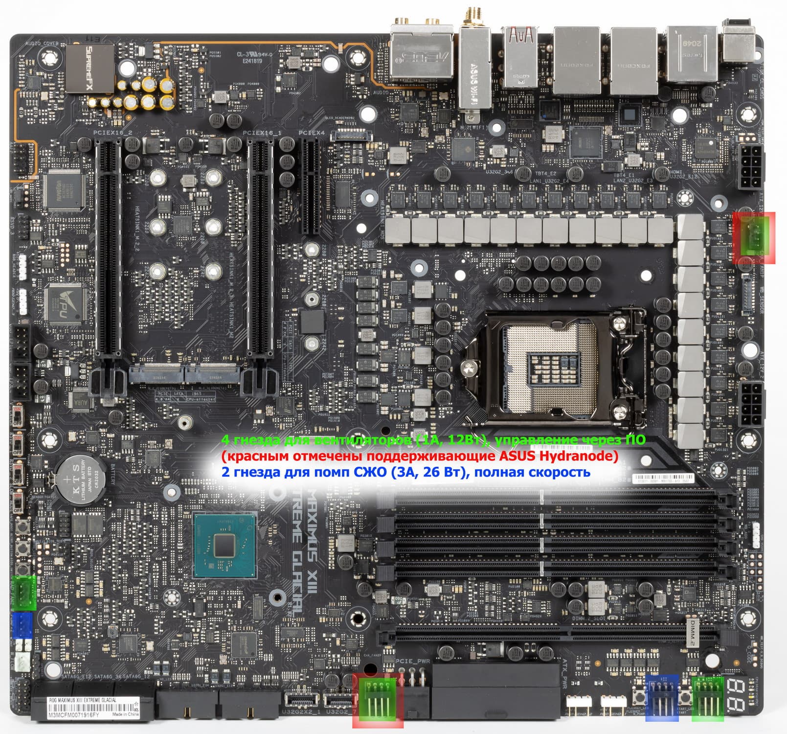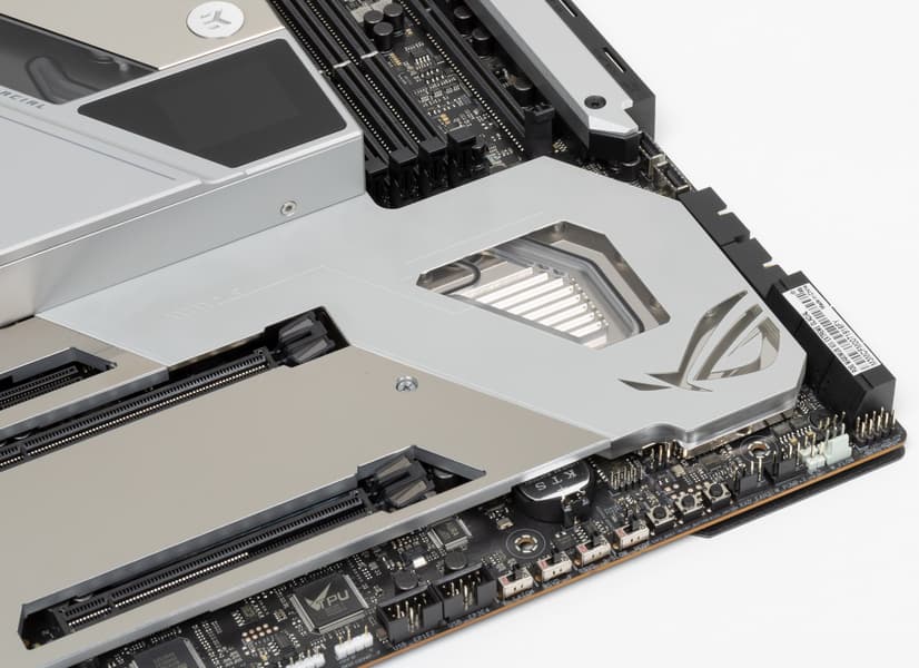 Теперь про охлаждение. А это именно самая интересная часть материала по сути, ибо в плане периферии и функционала как материнской платы данный продукт практически идентичен своему младшему собрату — Asus ROG Maximus XIII Extreme.
