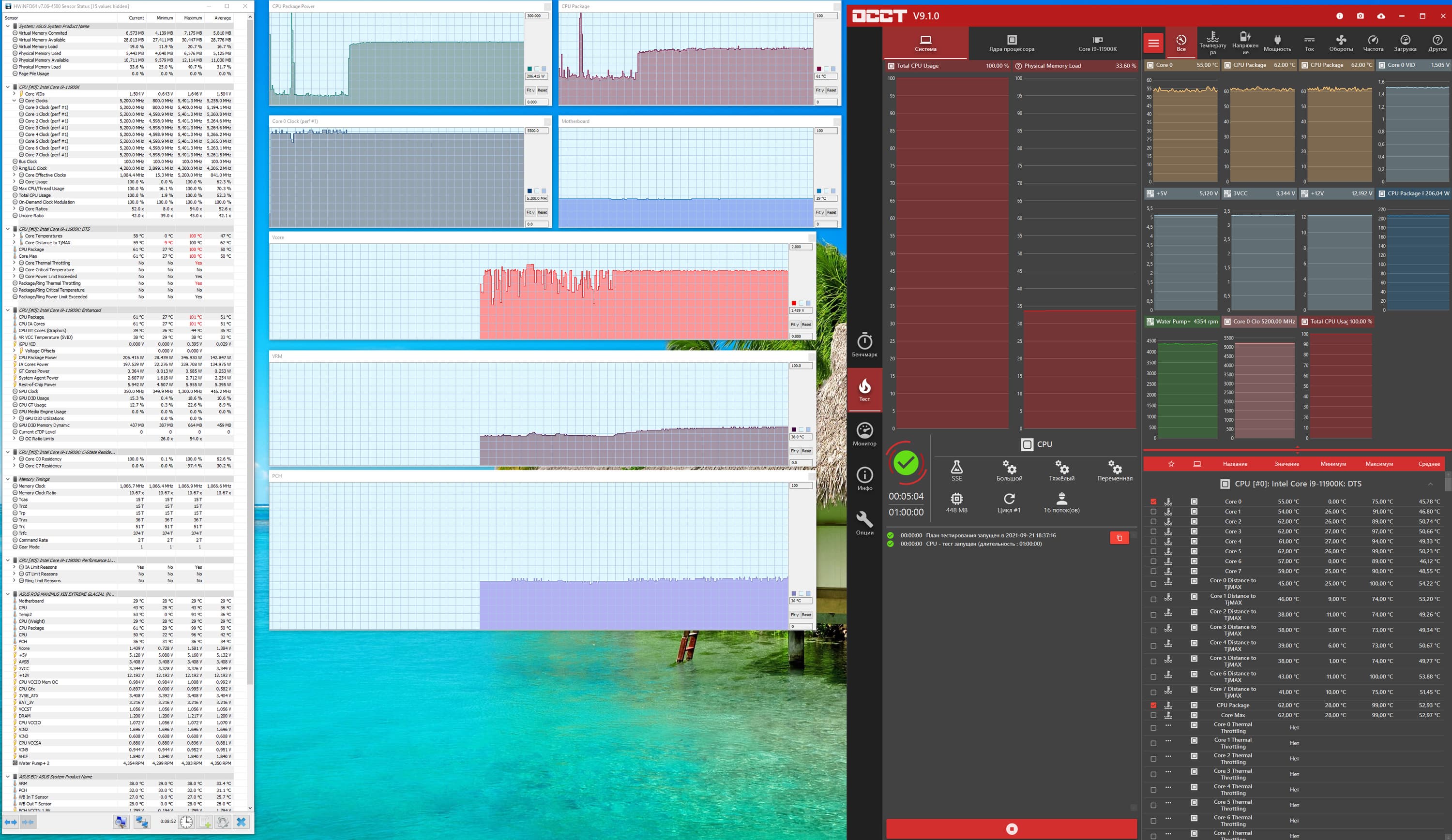 А если тестировать через ОССТ, то вообще 5,2 ГГц ставится по всем ядрам. Тепловые параметры работы платы в этом режиме ничем не отличались от предыдущих.