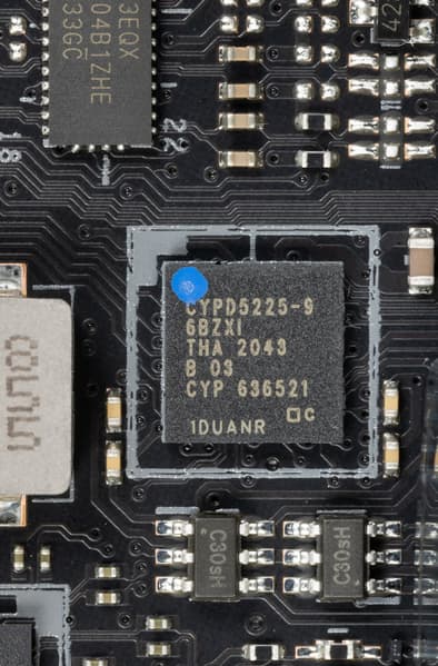 Все быстрые USB порты Type-C оснащены ре-драйверами PI3EQX от Diodes Inc (ex Pericom), дающими устойчивый вольтаж, способный обеспечить быструю зарядку мобильных гаджетов через них.