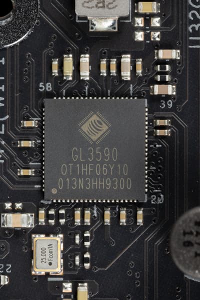 - Genesys Logic GL3590 (4 USB 3.2 Gen2 через 4 порта Type-A на задней панели) (1 линия USB 2.0);
