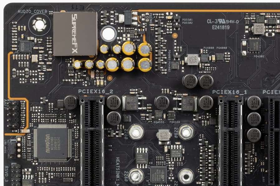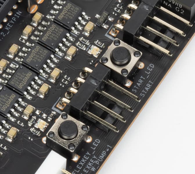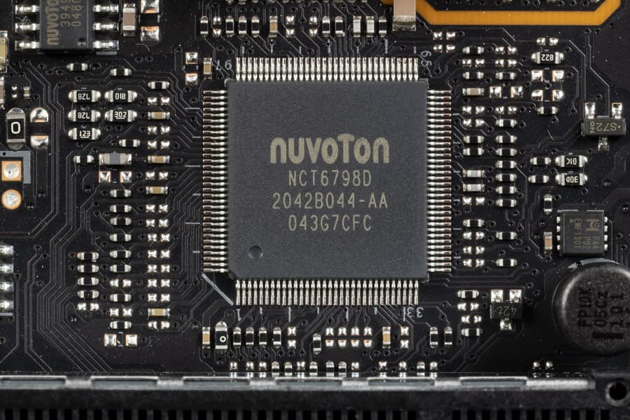 За мониторинг состояния платы отвечает, а также контролирует работу всех гнезд СО (а также в целом Multi I/O) контроллер Nuvoton NCT6798D.