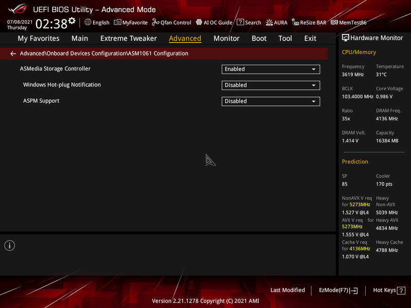Всего у платы 6 разъемов Serial ATA 6 Гбит/с + 3 слота для накопителей в форм-факторе M.2 (+2 слота М.2 через фирменный слот ROG DIMM.2). 4 порта SATA реализованы через чипсет Z590 и поддерживают создание RAID.