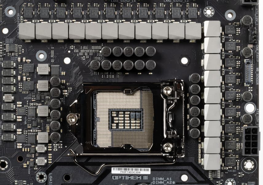 Еще раз надо напомнить, что Asus ROG Maximus XIII Extreme Glacial поддерживает процессоры Intel Core 10-го и 11-го поколения, выполненные под разъем (сокет) LGA1200. Система крепления систем охлаждения для CPU точно такая же, как и для LGA1151.