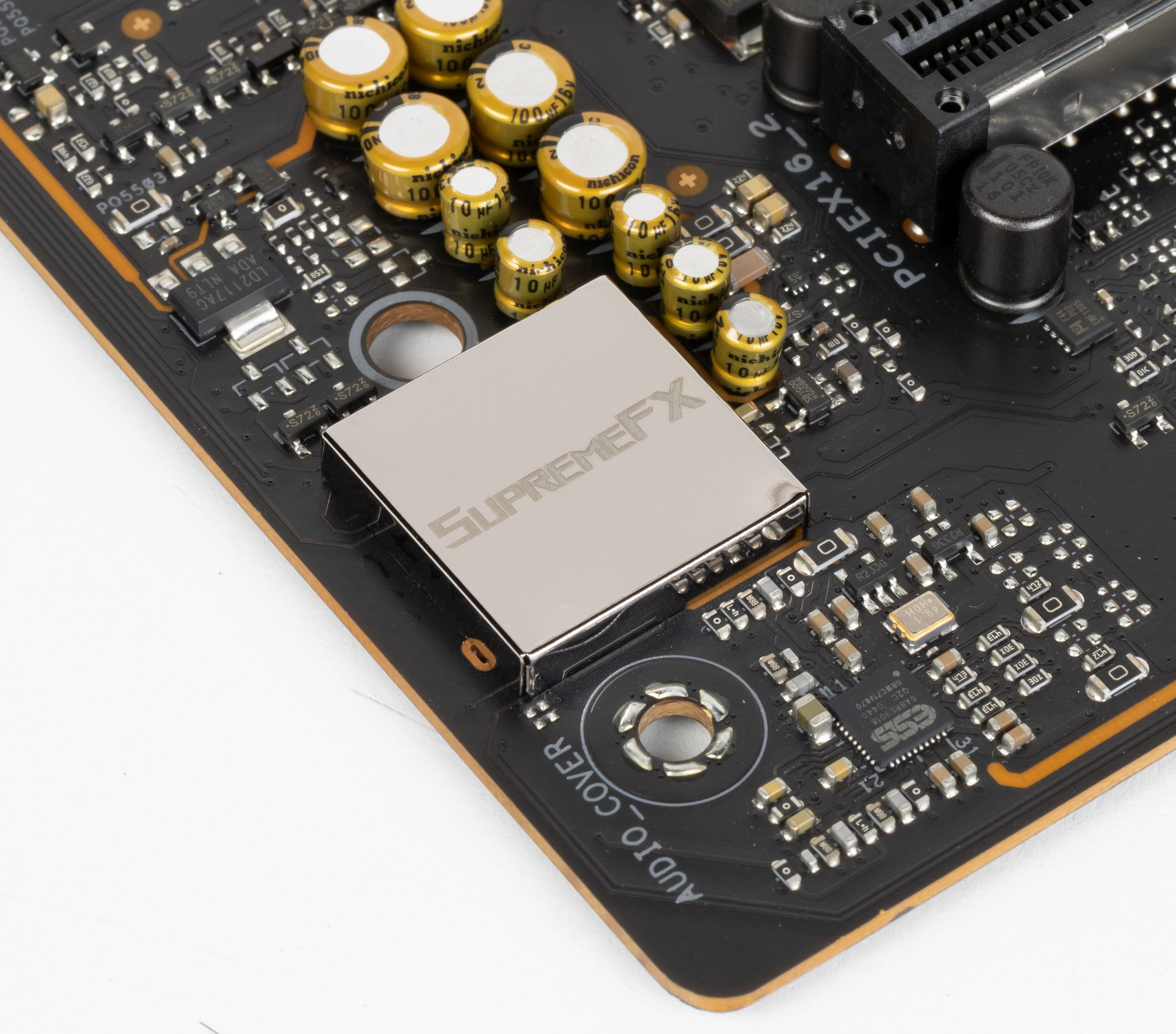 В традициях Asus накрывать микросхему кодека металлическим колпачком с собственным названием аудиоподсистемы SupremeFX.