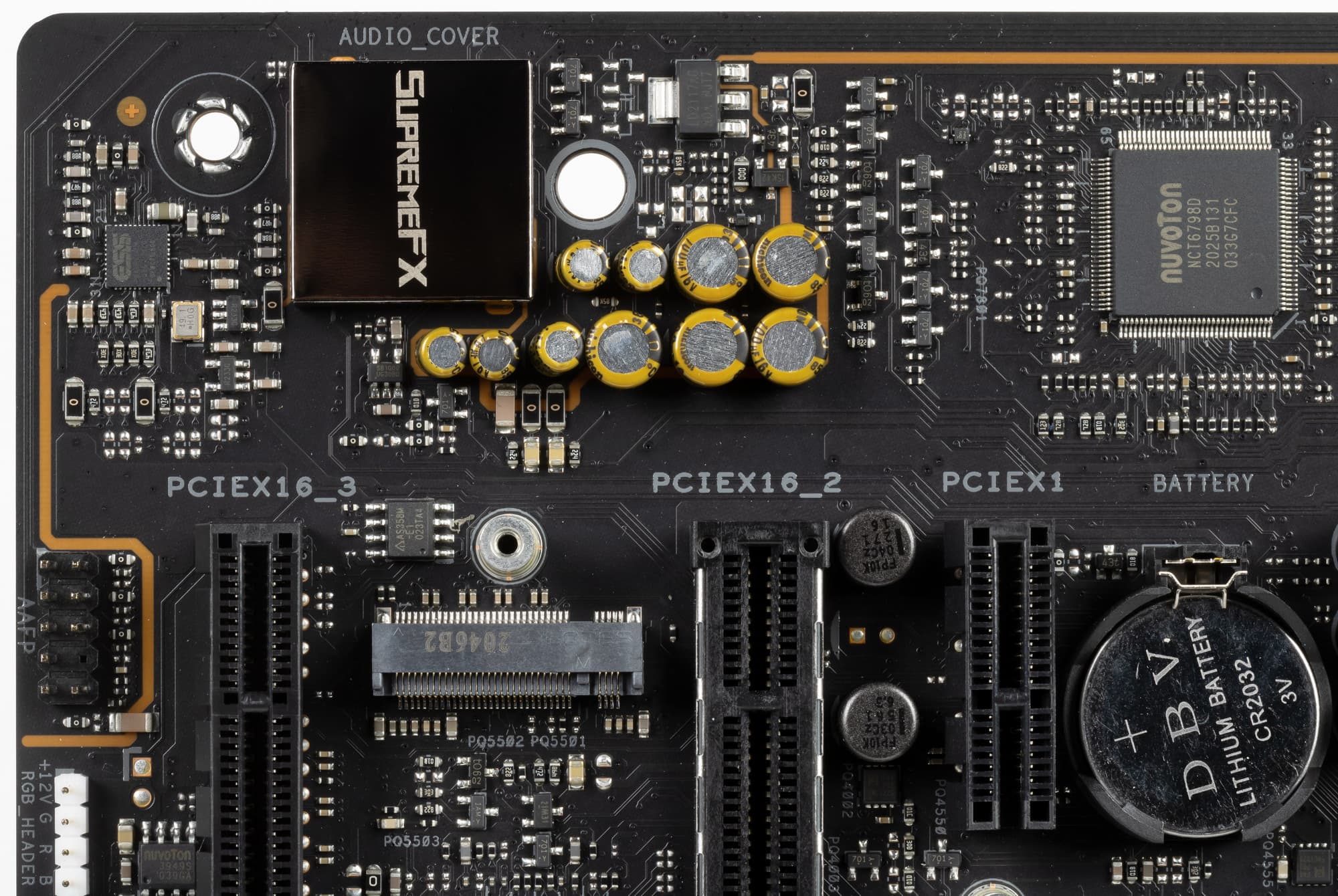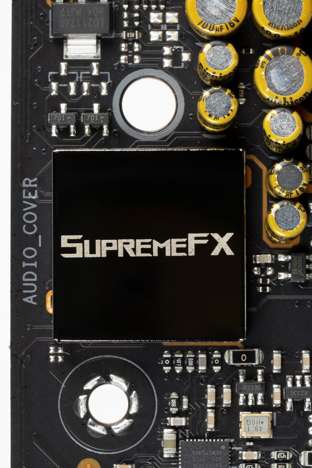 В традициях Asus накрывать микросхему кодека металлическим колпачком с собственным названием аудиоподсистемы SupremeFX.