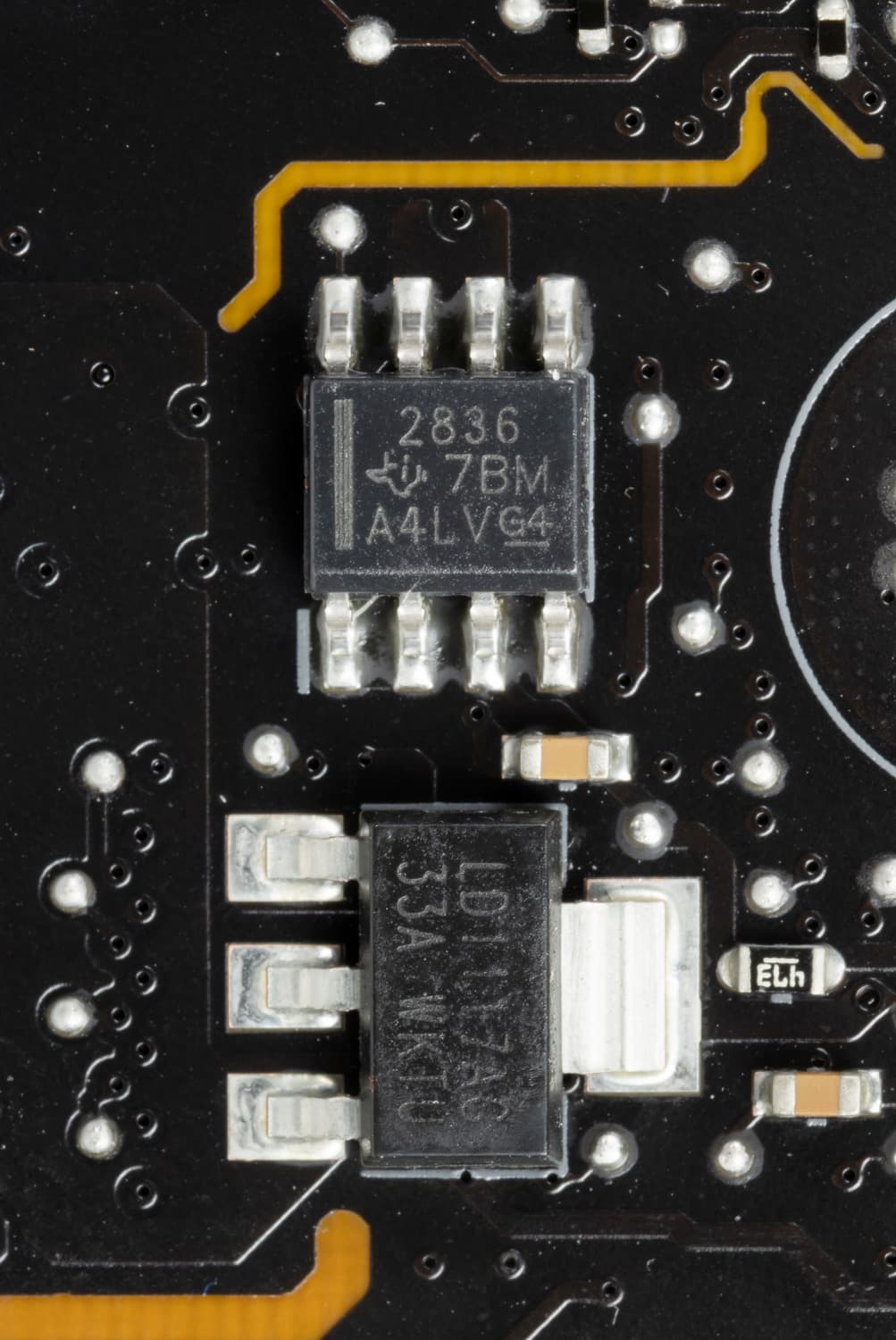 На оборотной стороне расположена некоторая логика. Текстолит обработан хорошо: во всех точках пайки не только острые концы срезаны, но и все неплохо отшлифовано. Бэкплейта нет.