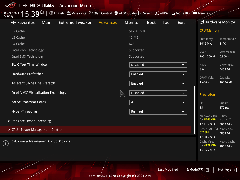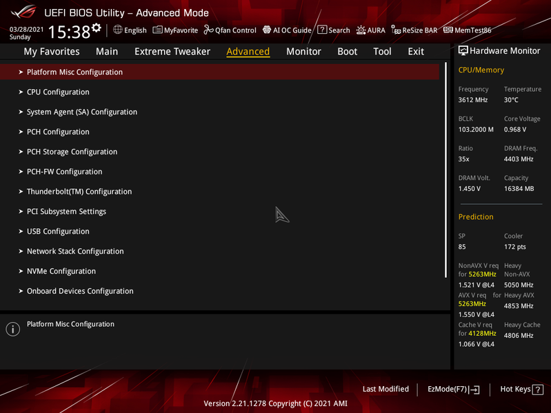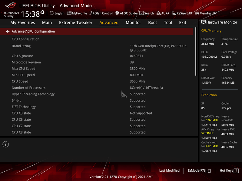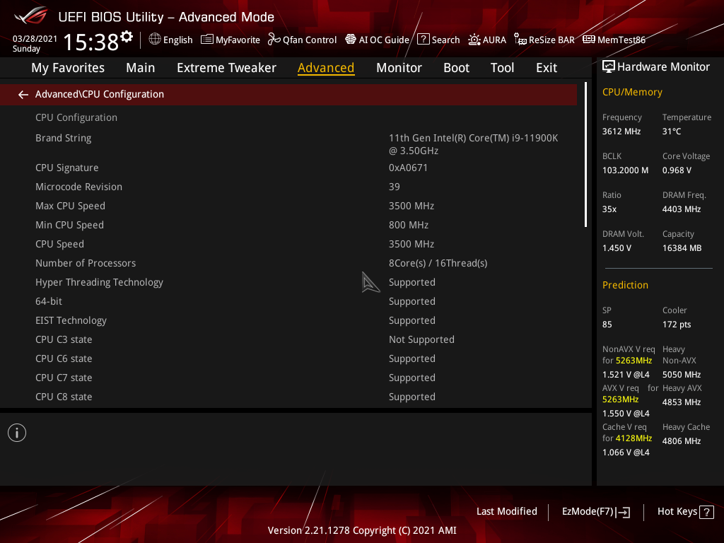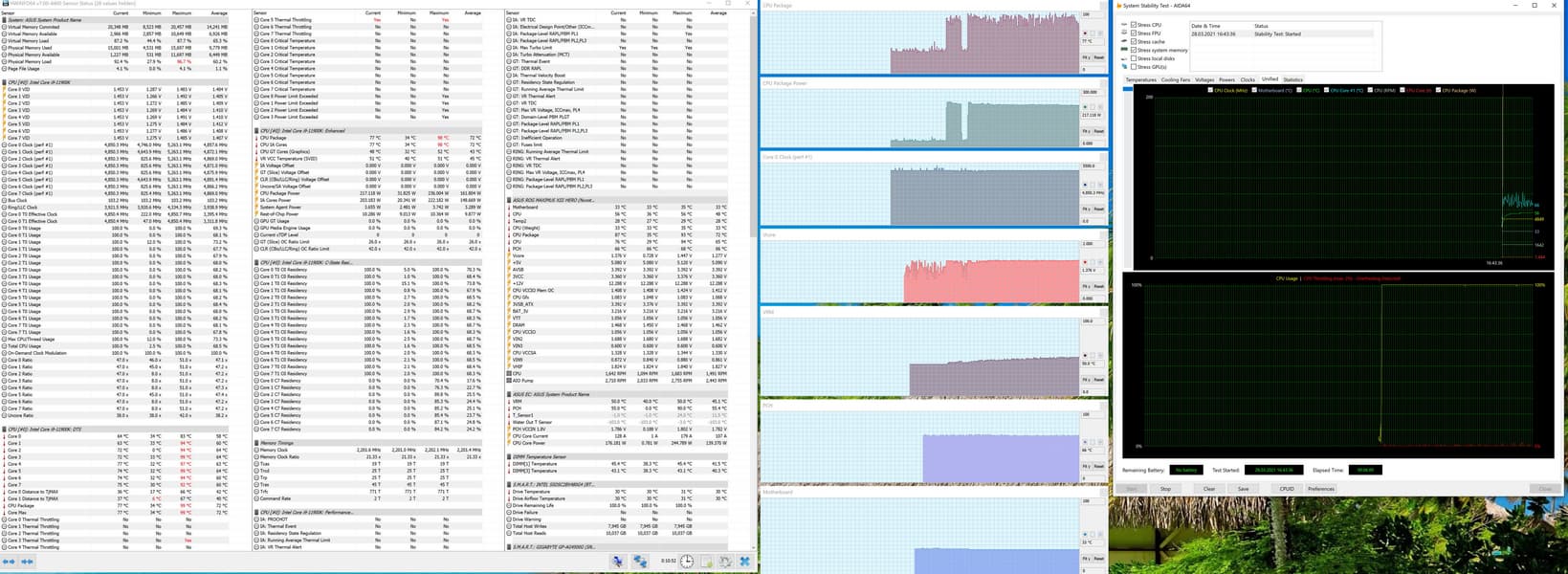 Собственно, как и в тестах иных первых материнских плат на Z590, видим всю ту же проблему: при наличии мощной СВО мы получаем банальный перегрев процессора даже на частотах 4,8 ГГц, не говоря уж о более высоких достижениях. Увы, установка параметров работы вручную, особенно вольтажа на ядре приводила все к тем же зависаниям системы (вне зависимости от того, какое напряжение выставлять — стабильно работала только установка Auto). Учитывая крайне сжатые сроки, что я имел для тестирования (ждали обновления ПО и BIOS до последних дней перед анонсом 30 марта), не было физической возможности разобраться как следует с настройками, чтобы все же попытаться заставить работать процессор на частотах, хотя бы 5,0 ГГц по всем ядрам. Сами понимаете, это даже 4,7 ГГц (тот вариант, что был найден для стабильной работы) — это мало для i9-11900K (с учетом того, что с той же СВО i9-10900K прекрасно работал на 5,1 ГГц), и потому неинтересно. Разумеется, сама плата тут не при чем — виновата сырая версия BIOS. Так что, всем, кто захочет купить данную материнку, крайне рекомендую тут же обновить BIOS. Ну и,скорее всего, коллегам, которые получат данную матплату на тесты после нас, повезет больше.